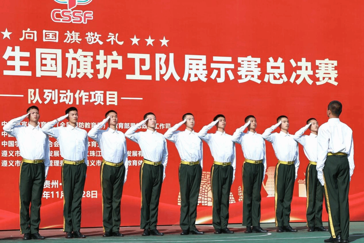 11月24日-28日,由中宣部宣传教育局(全民国防教育局)、教育部思想政治工作司联合指导,中国学生体育联合会主办的2025中国大学生国旗护卫队展示赛(总决赛)在贵州遵义圆满落幕。作为全国高校国旗护卫领域的最高水平赛事,本次总决赛汇聚了全国58所高校的78支队伍近1400名队员同台竞技,角逐行业标杆荣誉。在与全国顶尖强队的激烈比拼中,成都航空职业技术大学国旗护卫队表现卓越,在“队列动作”与“升旗展示”两大核心竞赛项目中,双双斩获全国二等奖,为学校赢得了沉甸甸的国家级殊荣。