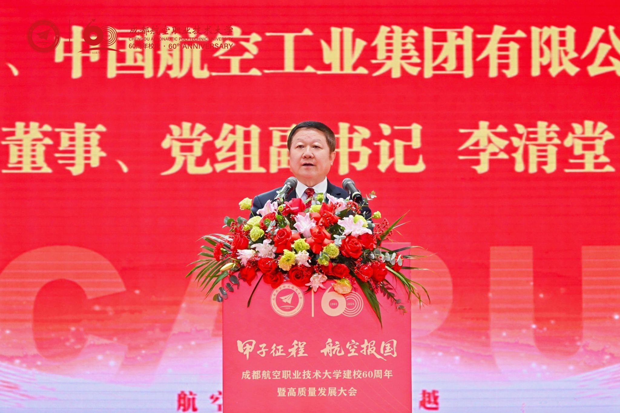 李清堂在讲话中表示,中航工业与成航血脉同源、同气连枝,成航的诞生与成长也镌刻着航空工业发展的时代印记。多年来,中航工业与成航深度协同、共育英才,联合打造“世赛班”协同育人模式,建立常态化人才供需对接机制,协同创立航空职教集团、航空装备制造产业学院,建立互派挂职机制,实现校企“双主体”育人、供需“精准化”对接,成功打造了航空领域人才自主培养“样板间”。他强调,中航工业将继续与成航一道,共同探索人才共引、课程共建、专家共享新机制,在人才培养上再深化;共同打造项目共策、技术共享、资源共用新模式,在科技创新上再协同;共同建立需求识别、成果转化、军民融合新业态,在产业发展上再共赢。