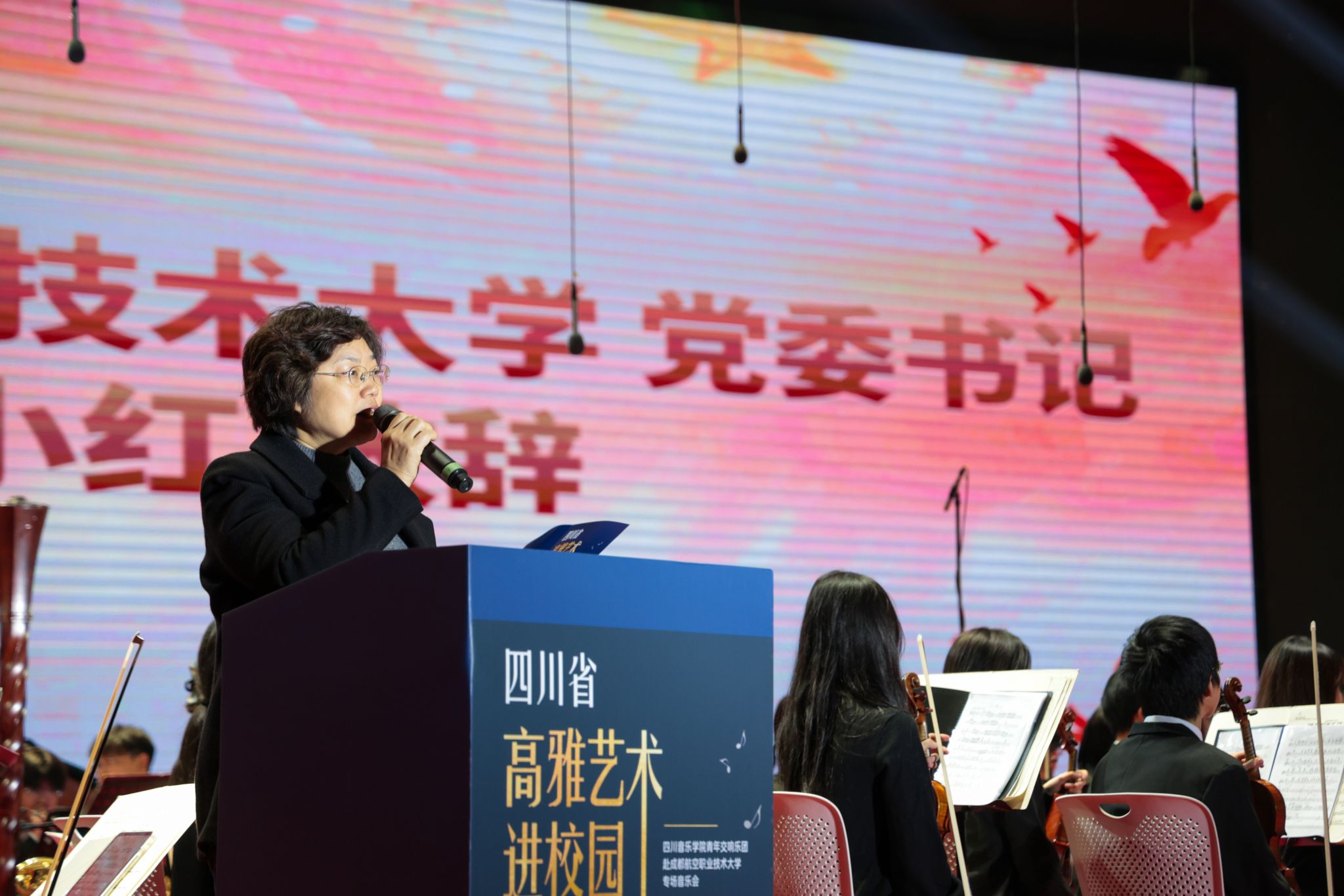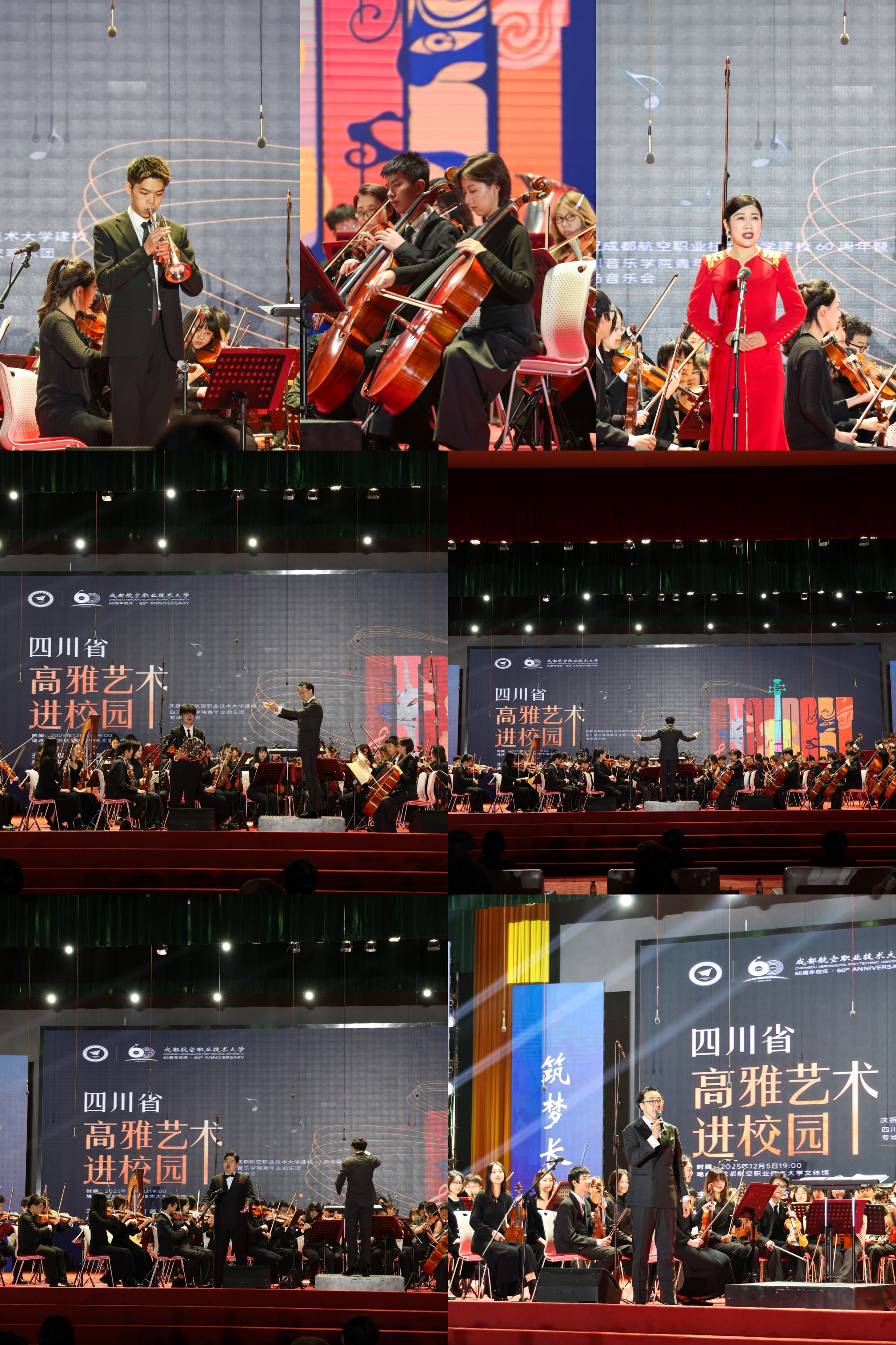 六十载薪火相传,一甲子弦歌不辍。12月6日晚,成都航空职业技术大学龙泉驿校区文体馆内流光溢彩、座无虚席,“庆祝建校60周年暨四川省高雅艺术进校园专场音乐会”在此举行。学校党委书记陈小红,党委副书记、纪委书记徐林出席活动。各界校友代表、校企合作单位代表、兄弟院校嘉宾与校内师生共计2000余人欢聚一堂;线上直播更吸引了超过8000人次云端观礼。本次音乐会由学校教师赵茜与四川音乐学院艺术导聆罗雨嫣联袂主持。