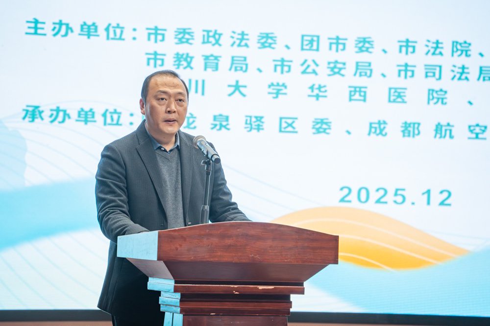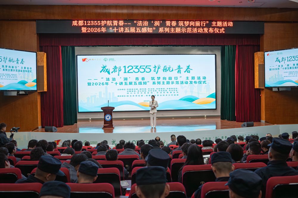 在第十二个国家宪法日即将到来之际,为弘扬宪法精神,筑牢法治根基,进一步厚植青少年法治信仰,12月3日,成都12355护航青春——“法治‘润’青春 筑梦向前行”主题活动暨2026年“十讲五展五感知”系列主题示范活动计划发布仪式在成都航空职业技术大学举行,共青团成都市委副书记刘俊,成都航空职业技术大学党委副书记谢亮冯,市委政法委、市司法局、四川大学华西医院等11家主办单位相关处室负责人,部分区(市)县团委、在蓉高校团委负责同志及高校师生代表共300余人参加。