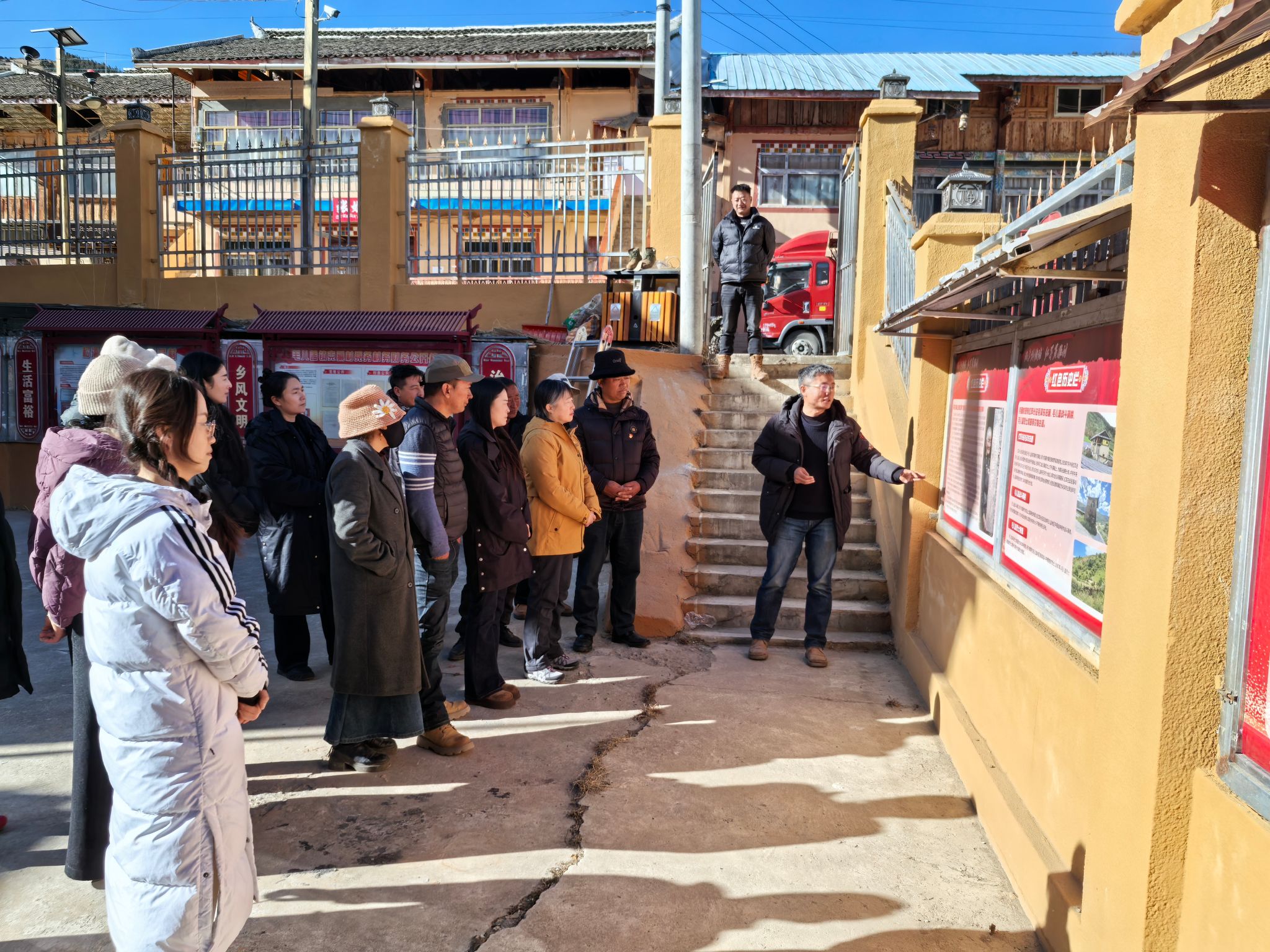 克藏村利用村史馆展板开展现场党课