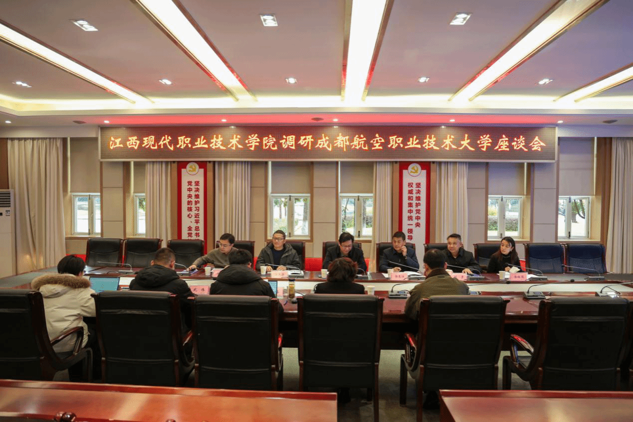 12月24日上午,江西现代职业技术学院党委书记陈飞一行到访成都航空职业技术大学调研交流。成航党委书记陈小红热情接待来宾并主持座谈。双方围绕党建引领事业发展、“双高计划”建设、职业教育本科办学、市域产教联合体运作及内涵建设等议题进行研讨。发展规划处、教务处、招生就业处等相关单位参与交流。