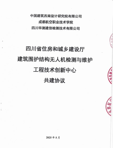 据悉,该工程技术创新中心由中国建筑西南设计研究院有限公司牵头申报,学校与四川华测建信检测技术有限公司作为共建单位深度参与。三方已正式签署共建协议,将秉持“优势互补、平等合作、共同发展”的原则,整合无人机系统技术、建筑材料研发、工程检测认证等领域的优质资源,构建“政产学研用”五位一体的协同创新体系。中心聚焦建筑围护结构检测与维护的核心技术瓶颈,重点开展无人机多模态检测技术融合研发、高性能建筑外表面建材创制、低空运载平台与机械臂协同维修技术开发三大方向研究,旨在破解传统建筑维护中人工风险高、检测精度低、维修效率差等行业痛点。