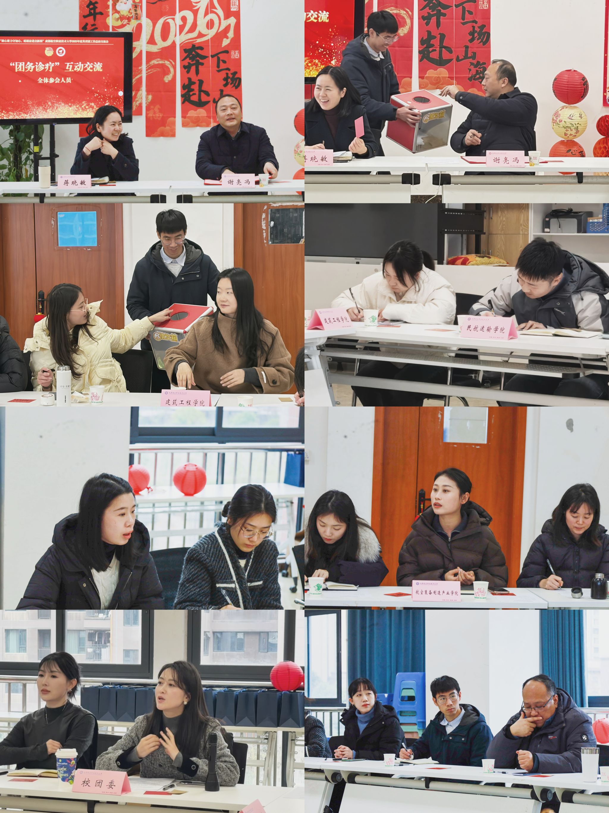 会上,别开生面的“团务诊疗”互动交流环节将会议氛围推向高潮。与会老师将工作中遇到的现实难题与困惑匿名写在卡片上,由谢亮冯和蒋晓敏现场随机抽取并朗读。问题涉及骨干培养、活动创新、班团协同、资源整合等多个方面。针对每一个“病症”,现场同仁踊跃“开方”——同仁们的即时回应、暖心安慰乃至实用妙招,成为集思广益、寻求支持的契机,许多工作中的困惑与心结在倾听与共鸣中悄然化解。这种直面问题、求真务实的交流形式,充分彰显了成航团学人团结协作、攻坚克难的实干精神。