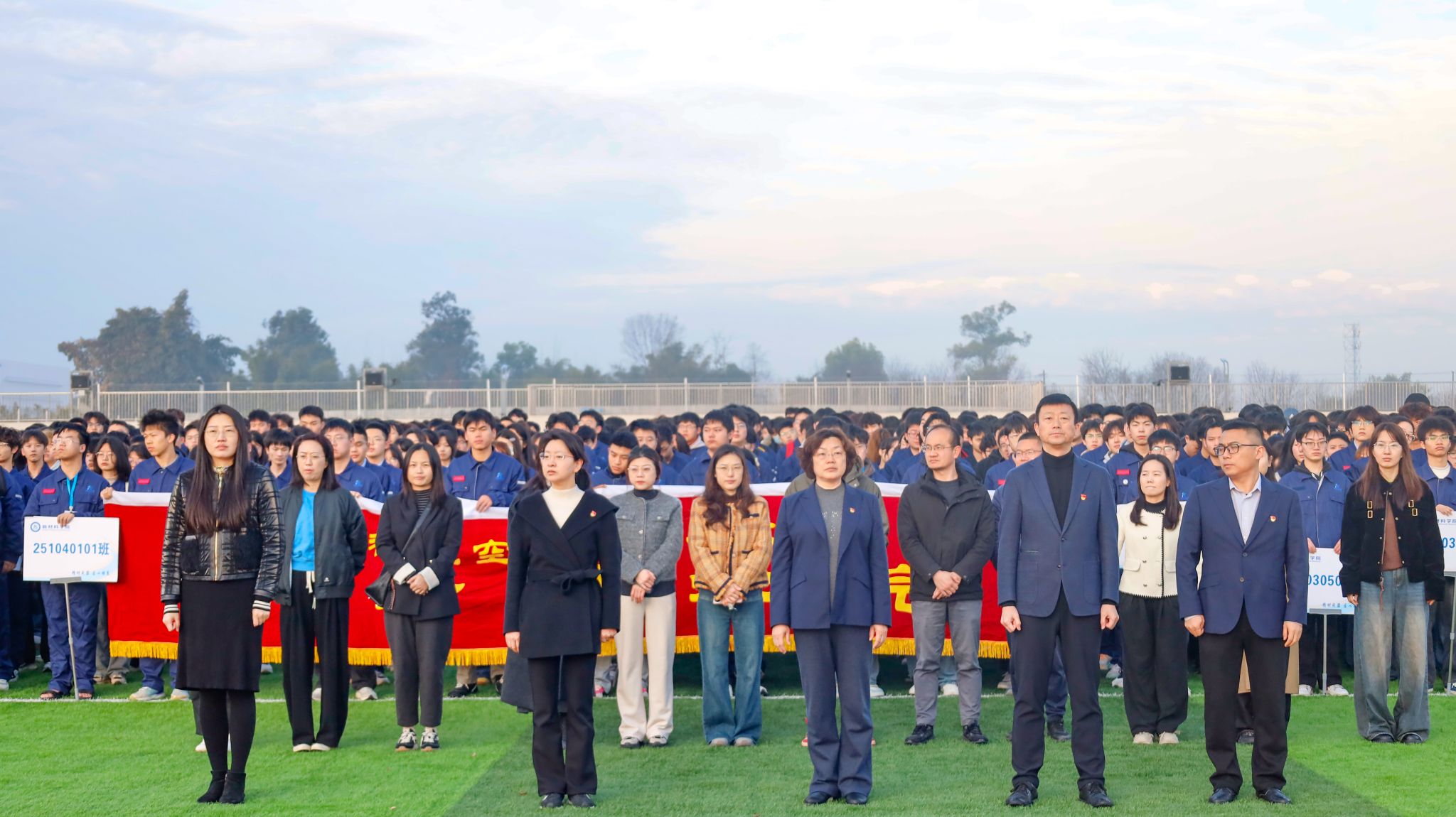 新学期启新程,立壮志向未来。3月9日上午,成都航空职业技术大学在学校龙泉校区、新都校区运动场同步举行了2025-2026学年春季学期升旗仪式暨开学第一课。学校党委书记陈小红,校长侯孟书,党委副书记、纪委书记徐林,党委副书记谢亮冯,副校长熊熙,副校长许丽佳,副校长许源源,各学院、单位负责人及全体学生、辅导员共同以昂扬奋进之姿参加升旗仪式,迎接新一学期。