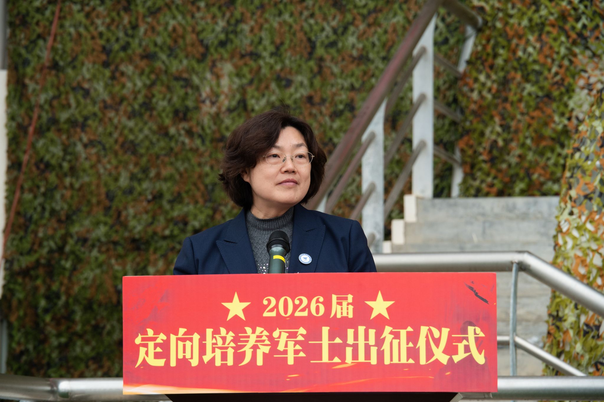 陈小红在讲话中指出,同学们生逢建军一百年奋斗目标的攻坚之年,身处科技强军、人才强军的新时代,投身军旅,既是响应祖国号召,更是肩负时代使命。她向即将出征的2026届定向培养军士提出三点期望:一是“以党建铸魂,永葆忠诚本色”,把红色信仰刻进未来军旅生涯,让“绝对忠诚、绝对纯洁、绝对可靠”成为军旅人生不变的底色;二是“以实干立身,锤炼胜战本领”,秉承“航空报国,追求卓越”的学校精神,主动对标新域新质战斗力建设要求,争做能打仗、打胜仗的优秀军士;三是“以坚守致远,立志长期服役”,在日复一日的坚守中磨砺意志,在急难险重的任务中锤炼担当,在强军兴军的壮阔征程中实现人生价值。