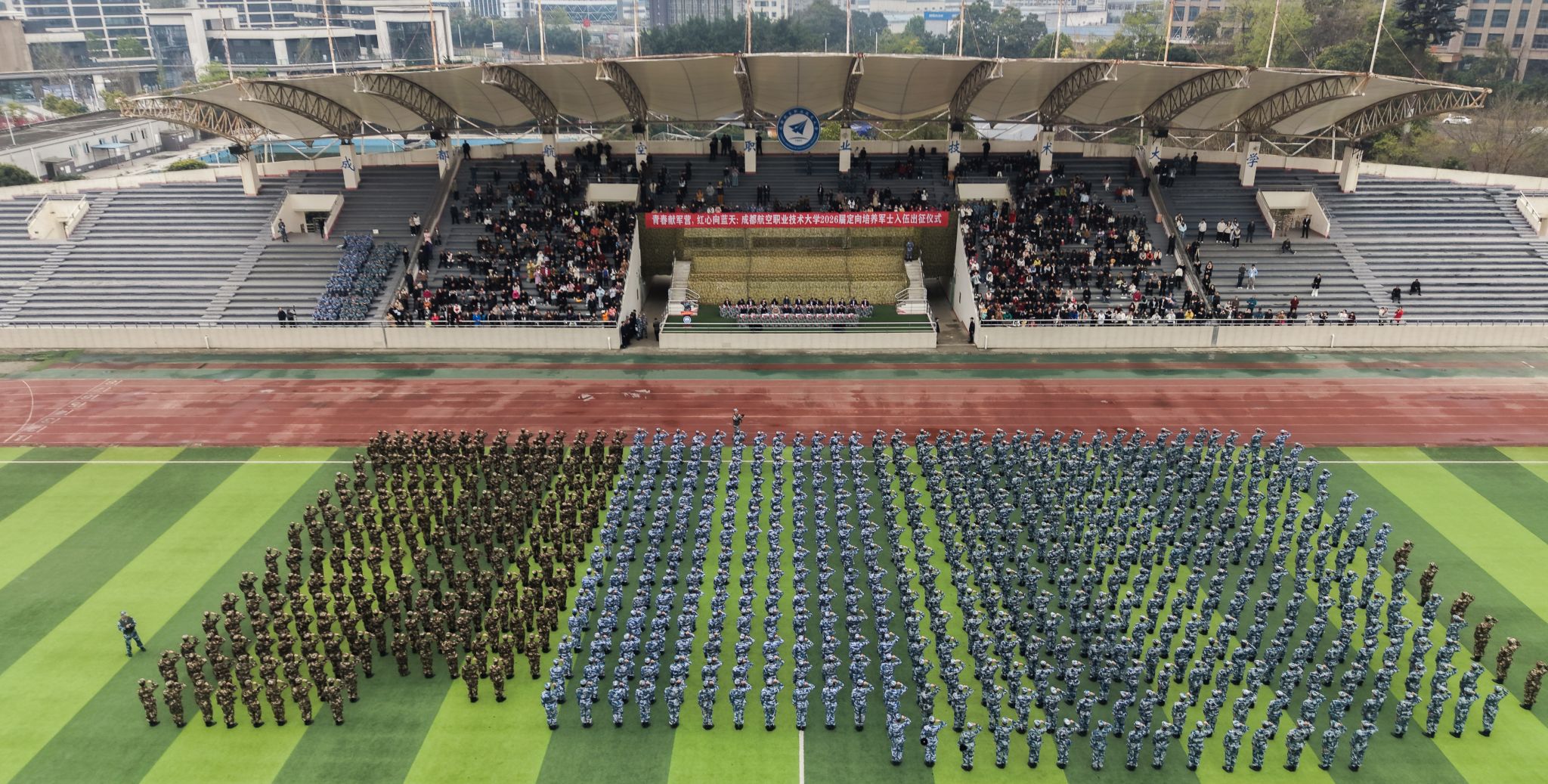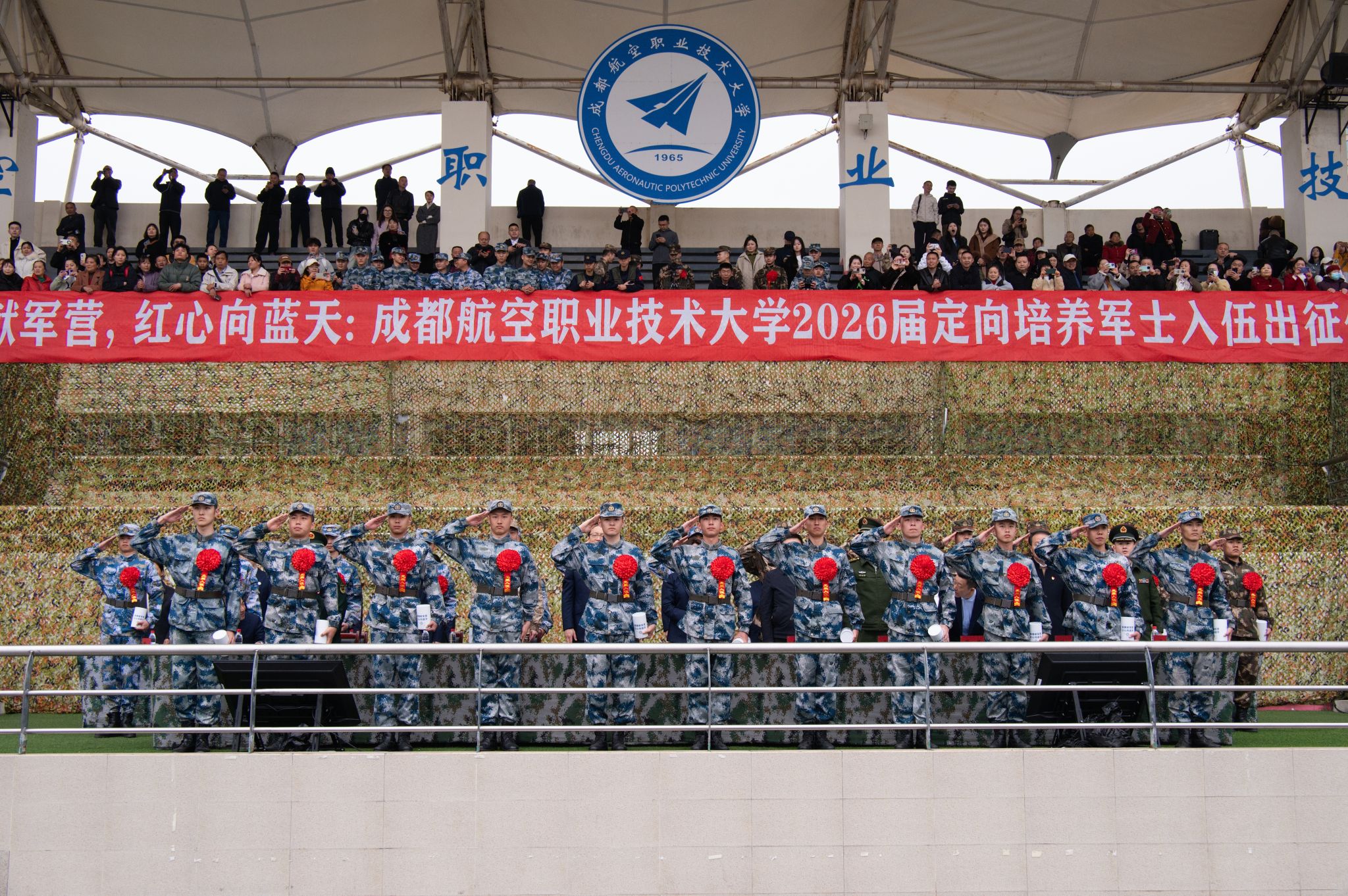 春潮涌川蜀,戎装赴军营。3月13日上午,成都航空职业技术大学2026届定向培养军士入伍出征仪式在学校第一运动场举行。2026届定向培养军士整装列阵,即将告别校园、奔赴军营,踏上强军报国的崭新征程。