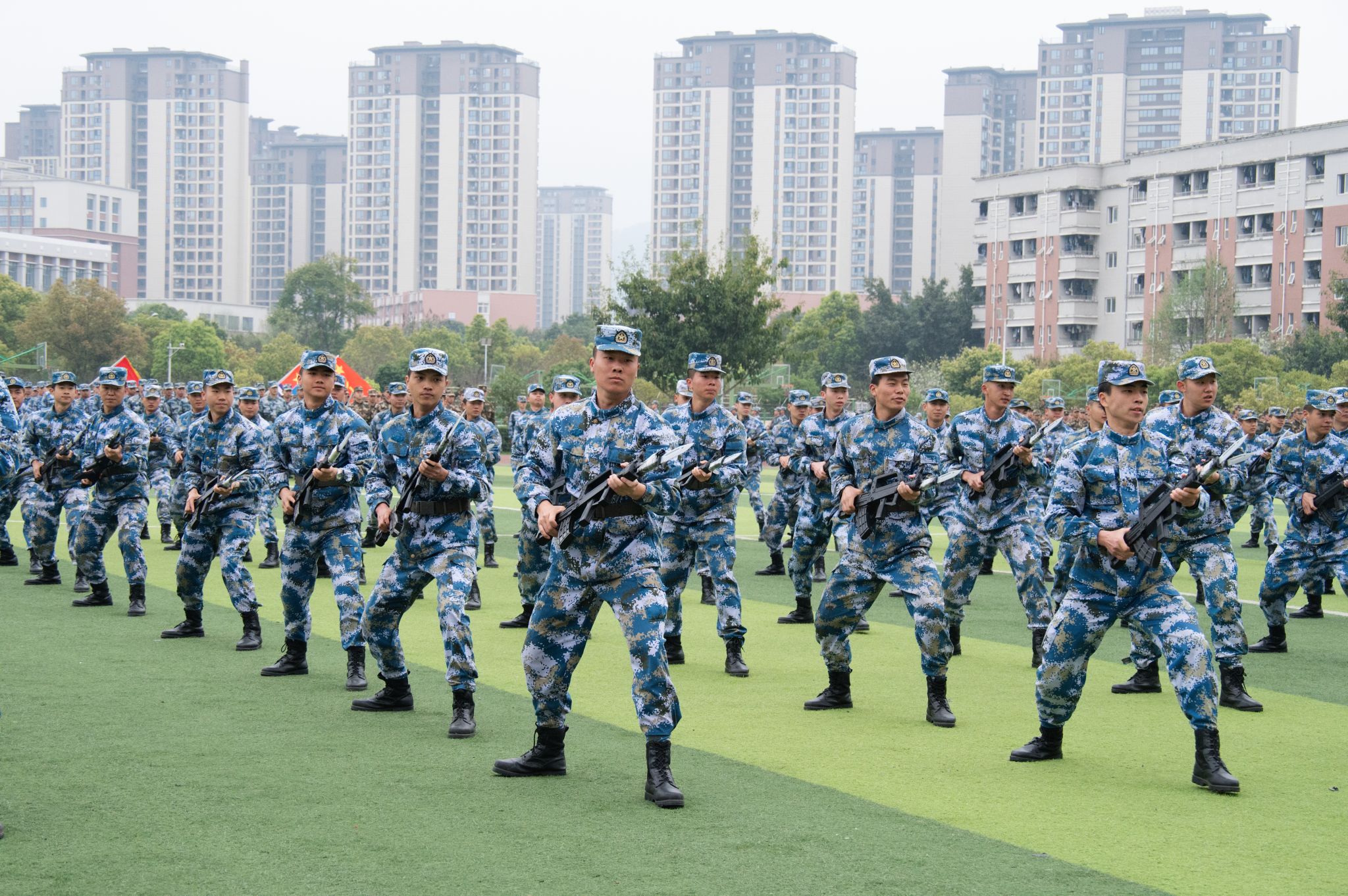 仪式在庄严的国歌声中拉开帷幕。伴随着激昂的旋律,一场精彩的军事特色科目展示充分展现了成航定向培养军士生过硬的军事素质和昂扬的精神风貌。随后,2026届学员代表李其祥同学带领全体入伍定向培养军士庄严宣誓,铿锵有力的声音响彻运动场上空,表达了成航定向培养军士献身国防、矢志强军的坚定决心。