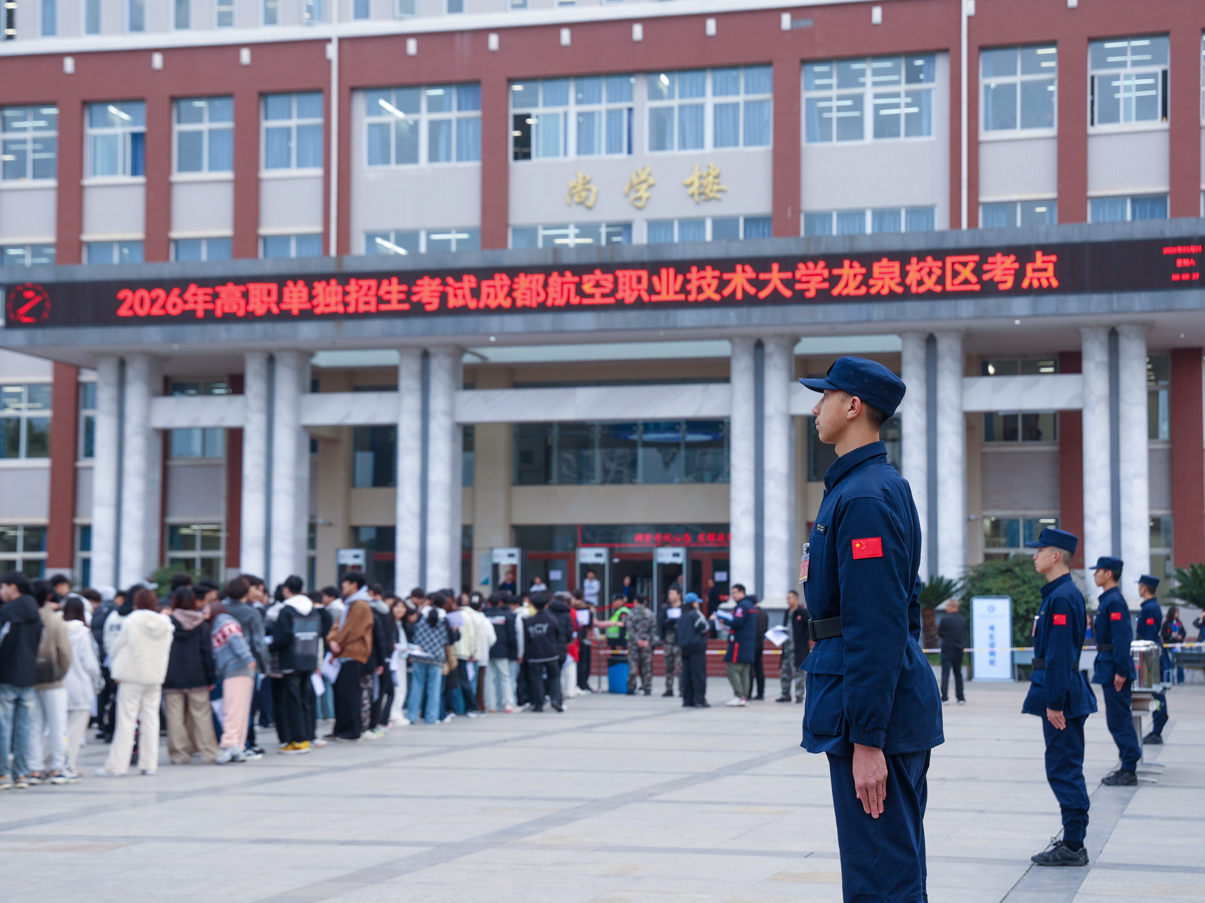 3月21日,成都航空职业技术大学考点2026年高等职业教育单独招生考试顺利举行。本次考试共设置98个常规考场和3个备用考场,共服务考生2910人。参与考试考务的工作人员220余人,后勤、安保、医疗保障等相关工作保障人员达到40余人。本次考试严格落实四川省教育厅、省教育考试院各项工作部署,坚持从严治考、暖心护考,全程组织严密、秩序井然、平稳有序,高质量完成考点组考各项任务。