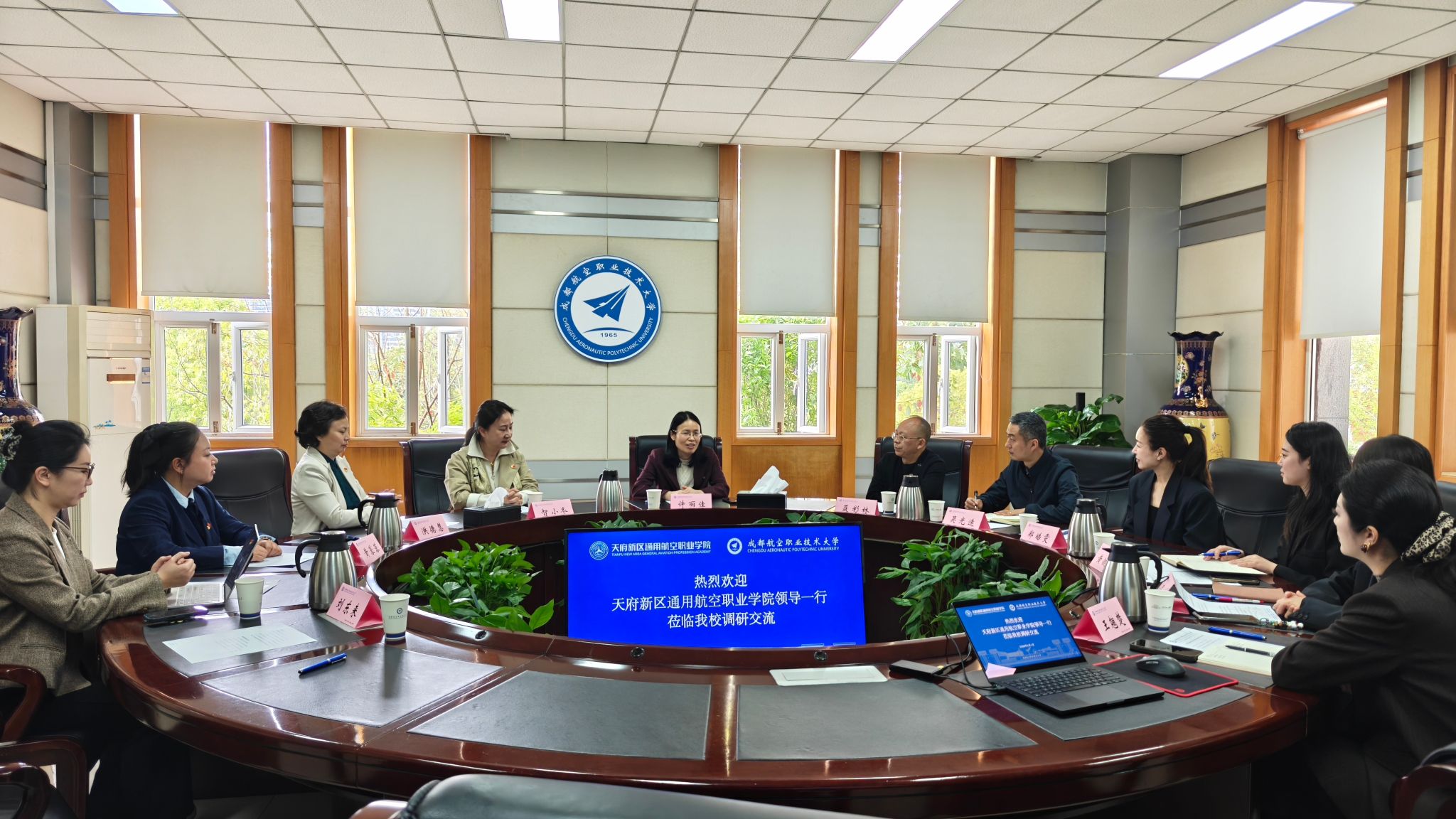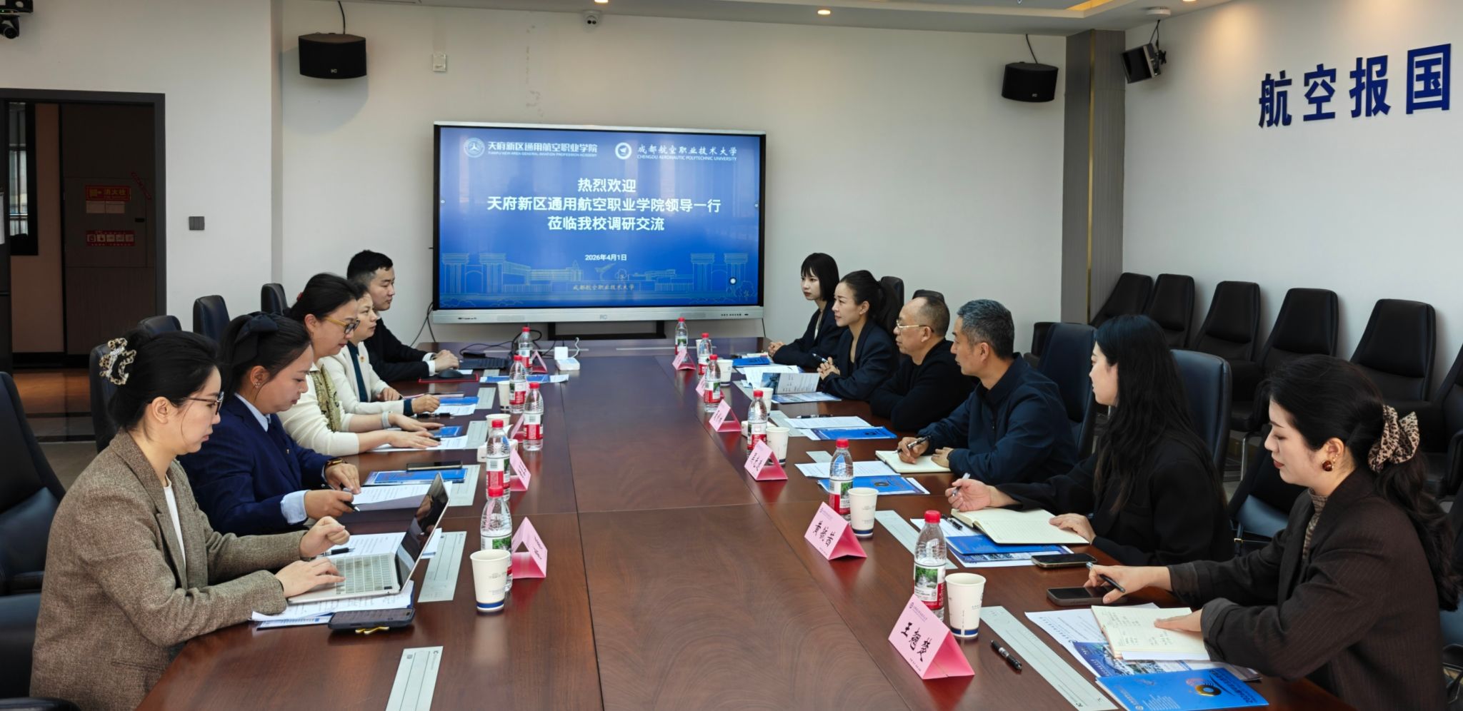 4月1日上午,天府新区通用航空职业学院党委副书记、副校长聂彩林一行到访成都航空职业技术大学调研交流。成航副校长许丽佳、民航运输学院相关负责人及空中乘务教研室教师代表参加座谈。