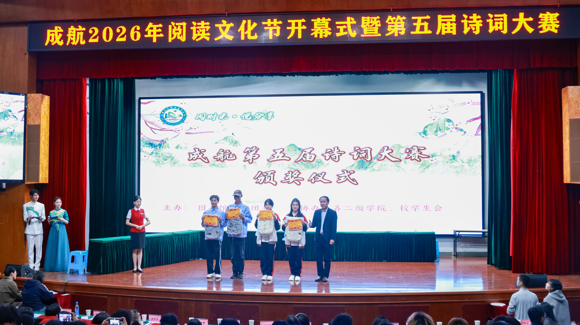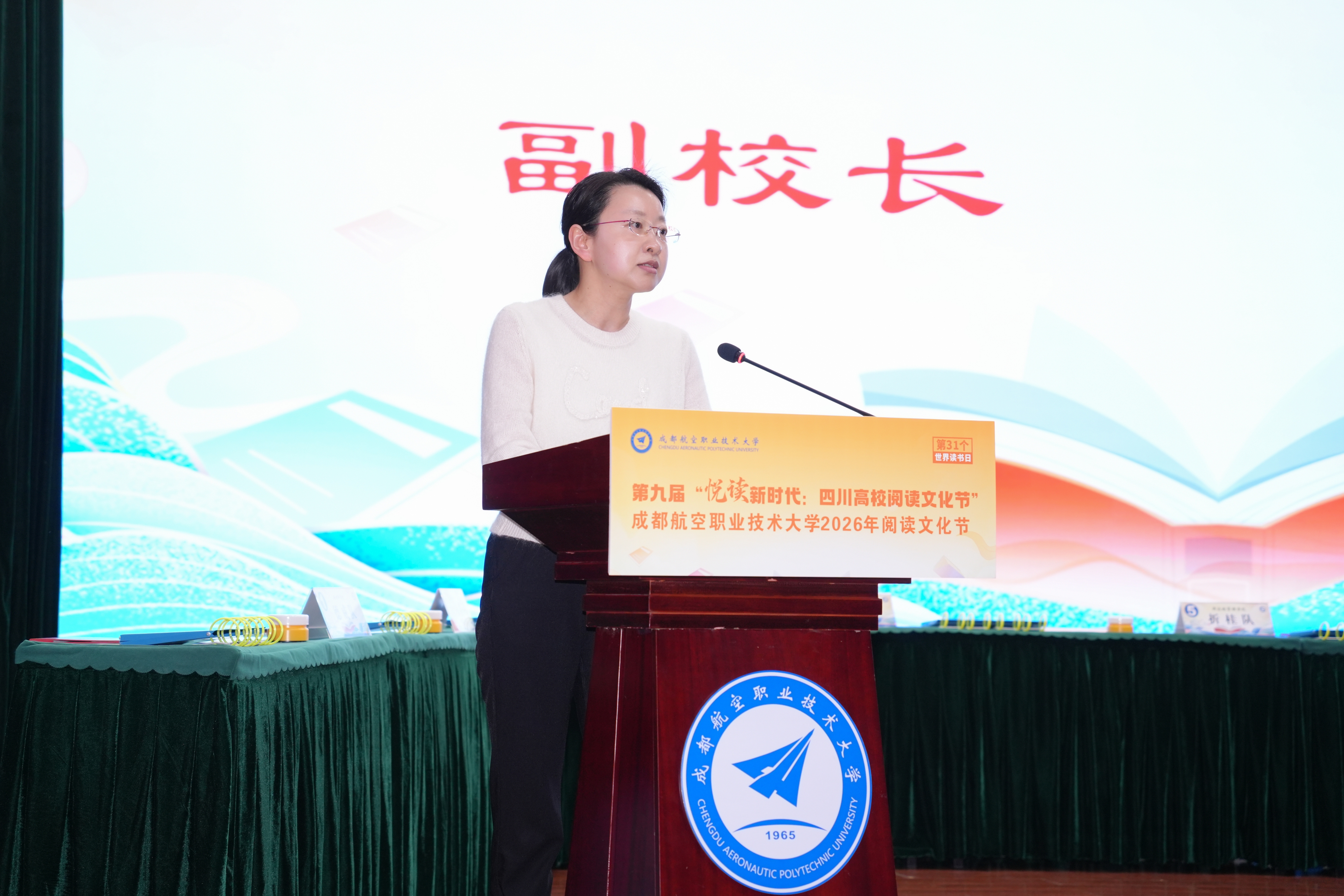 4月21日晚,成都航空职业技术大学2026年阅读文化节开幕式暨第五届诗词大赛在图书馆大报告厅举行。学校副校长许源源出席开幕式并致辞。党委学生工作部、校团委、各二级学院党总支负责人,以及300余名师生代表齐聚现场,共赴书香之约。