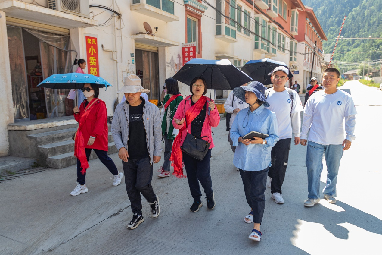 为贯彻习近平总书记关于教育的重要论述和关于语言文字工作的重要指示批示精神,在成都航院松潘实践团深入松潘县开展志愿活动之际,7月9日,学校党委书记陈小红、纪委书记张洁一行来到松潘县小姓乡大尔边村,指导志愿者将学校的专业技能与当地生产、教育活动相互交融,实现国家通用语言推广与乡村振兴紧密结合。
