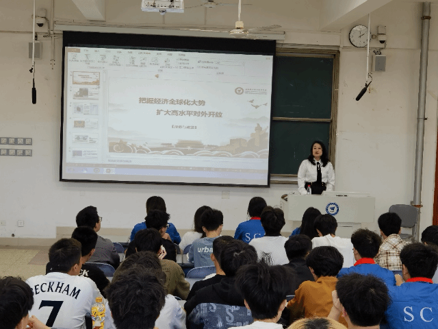 本次授课以《把握经济全球化大势 扩大高水平对外开放》为题,从“经济全球化发展趋势”“经济全球化发展新特点”“推动经济全球化的中国方案”三个方面进行讲授。张洁用马克思主义的立场、观点和方法分析经济全球化的重大意义和现实价值,通过丰富的案例使同学们认识经济全球化的发展阶段和新特点新趋势,深刻理解破解经济全球化困境的中国方案和推动世界繁荣发展的中国担当,提高了同学们对全球经济发展规律的认知和分析能力。她强调,开放是当代中国的鲜明标识,开放自信的中国将一如既往地为和平正义发声,为发展合作搭台,为全球治理献策,推动构建人类命运共同体。同时,她鼓励同学们要努力学习,了解国家的政策动态,扩大自己的国际视野,为实现第二个百年奋斗目标和中华民族伟大复兴的中国梦贡献自己的青春力量。