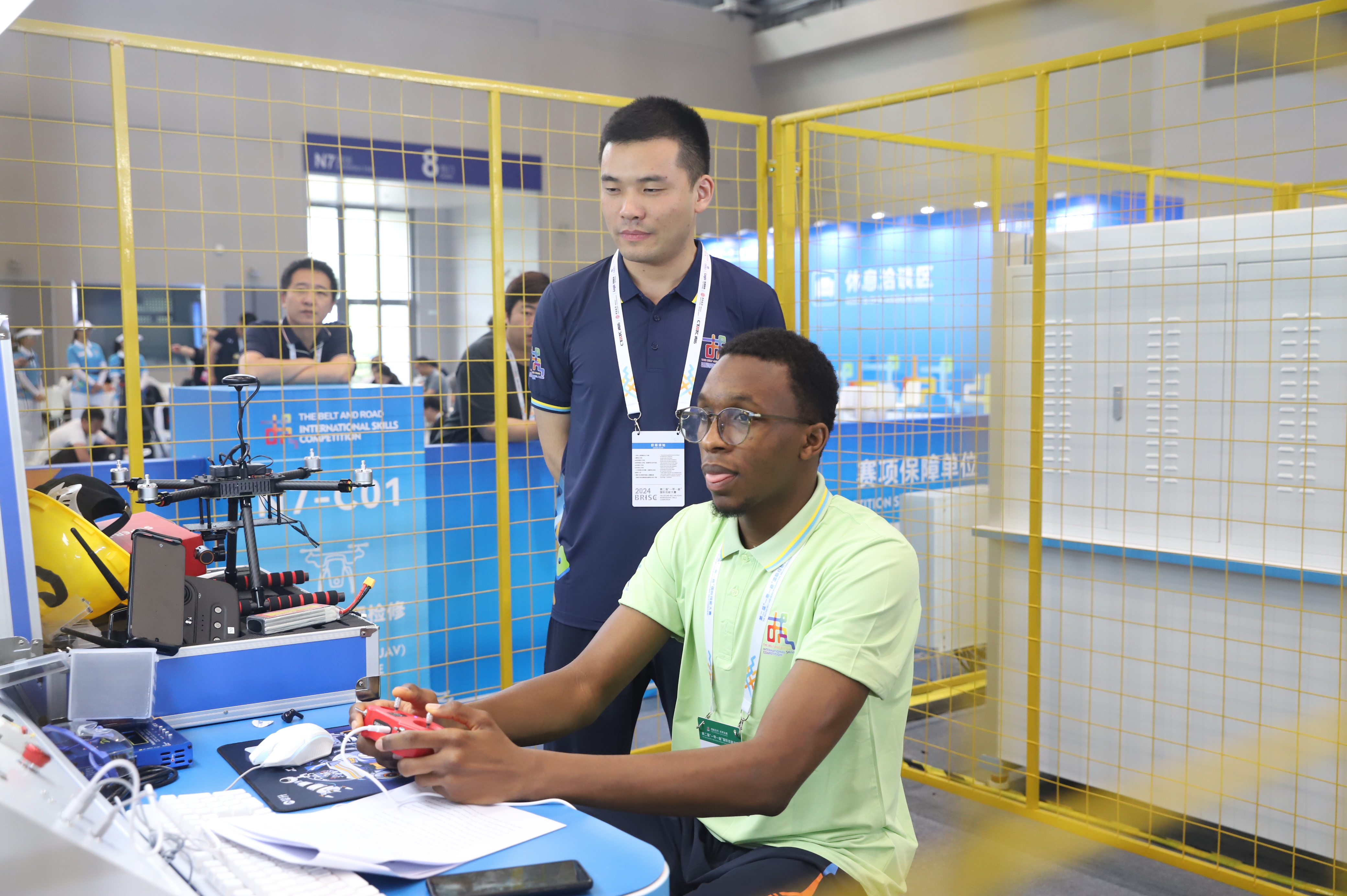 6月24日至26日,第二届“一带一路”国际技能大赛在重庆国际博览中心举行,成都航院留学生Malick Gaye、Mouhamadou Souleymane Diallo参加无人机装调检修赛项。