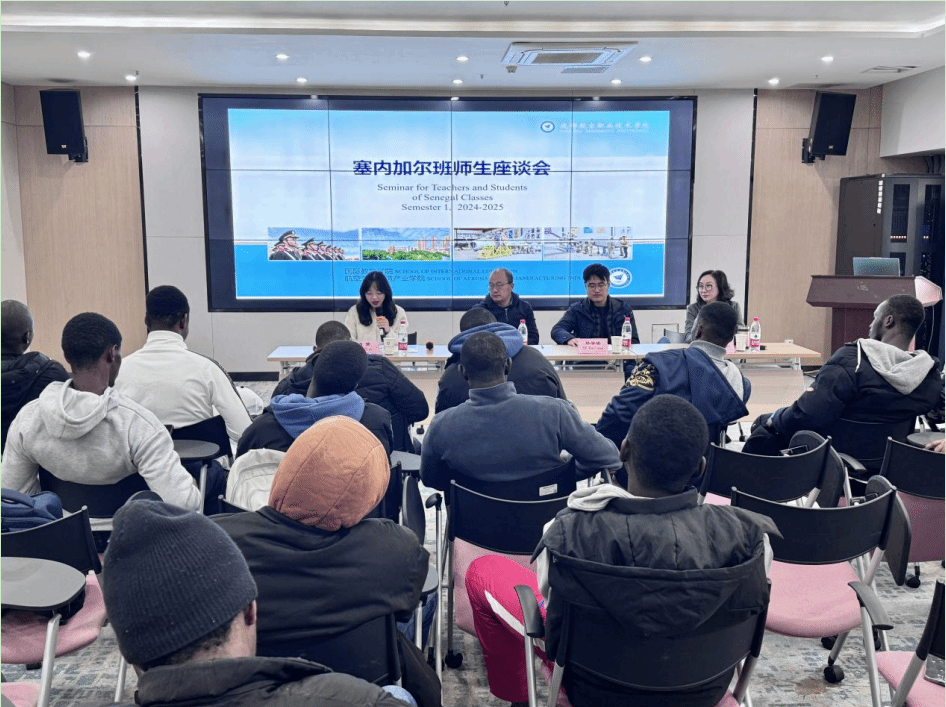 为提升学校留学生教育教学质量和管理服务水平,稳步推进第一届“未来非洲——中非应用型人才联合培养项目”留学生毕业筹备工作,11月26下午,由国际教育学院牵头的留学生毕业座谈会在博学楼804报告厅成功举行。国际教育学院副院长廖正非出席座谈会,航空装备制造产业学院、国际教育学院相关教师及第一届“未来非洲——中非应用型人才联合培养项目”全体留学生参会。