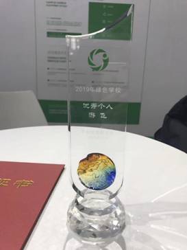 会议表彰了来自全国高校的12名优秀个人。因我校在2019年度绿色校园建设工作中成绩突出,后勤服务总公司游飞荣获“2019年绿色校园优秀个人”称号,我校也成为全国高职院校中唯一获奖代表。