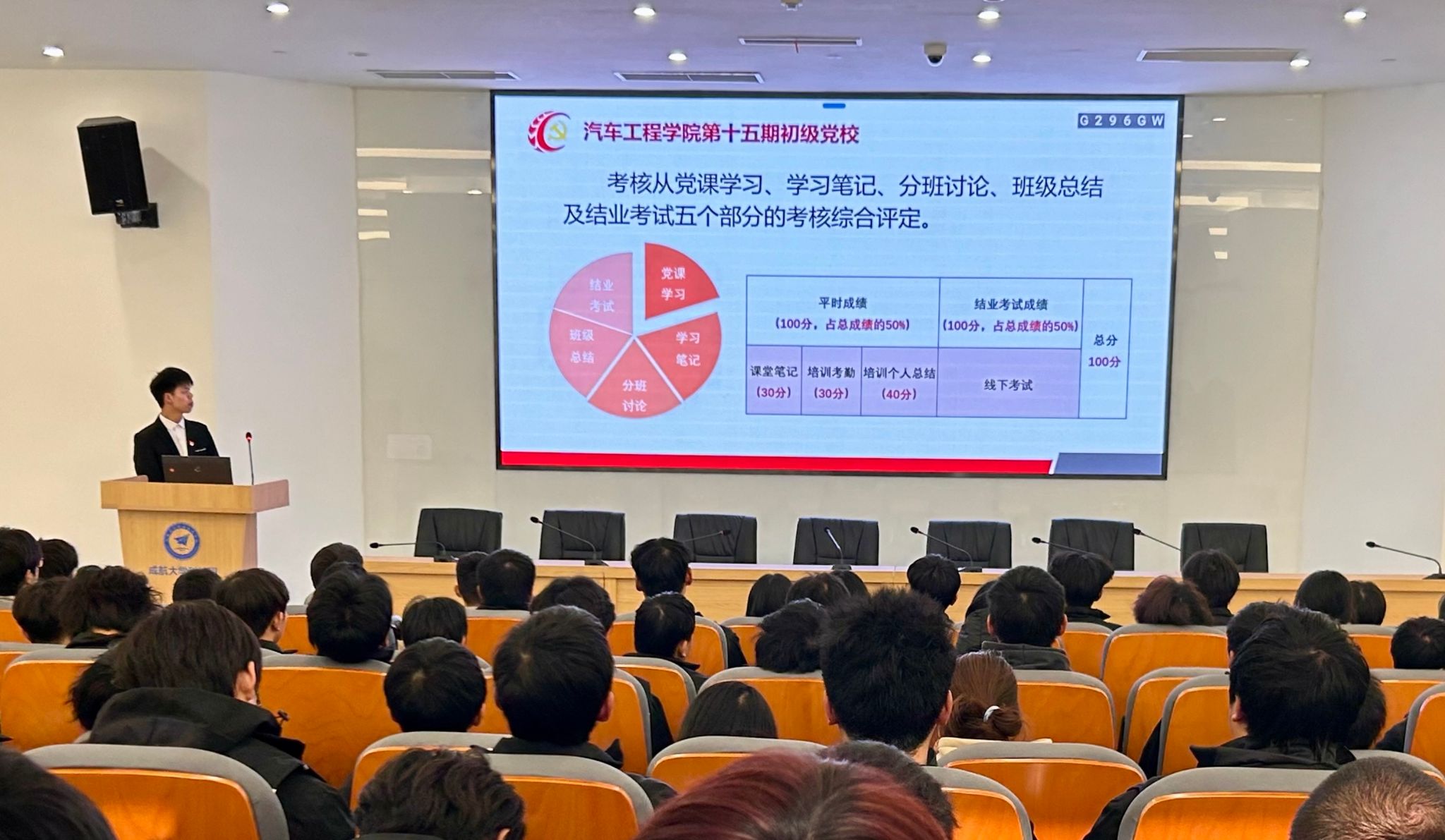 12月17日,汽车工程学院党总支在大学科技园报告厅举办第十五期初级党校培训班结业典礼,汽车工程学院党总支副书记陈佳出席典礼。典礼由汽车工程学院学生党支部书记汤旎主持。