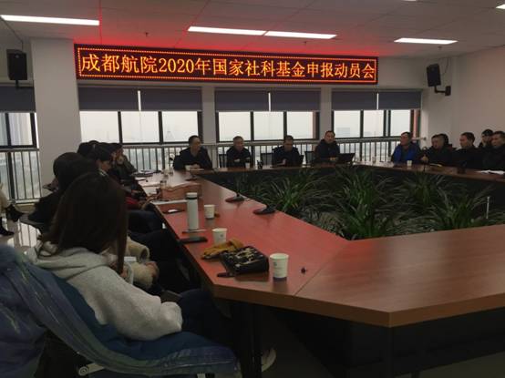 杨建国从学校领导重视层面、学校政策层面、申报工作引导层面动员鼓励我校老师克服困难,创造条件积极申报,努力争取获批。刘建超从科研能力和管理的角度阐述了申报国家社科基金项目对我校科研发展上水平上台阶的重要意义,肯定了我校科研团队在科研实力上的优势,对有科研实力的老师提出了殷切的期望。李明富宣读了全国哲学社会科学工作办公室2020年度国家社科基金项目申报工作的有关事项和四川省相关申报要求,部署了科技处人文社科项目管理岗位在此次申报中的工作安排和时间节点。参会老师们进行了交流发言,纷纷表示将尽最大努力,结合学校特色资源,探索有效申报路径,综合各方优势资源,积极申报2020年国家社科基金项目。