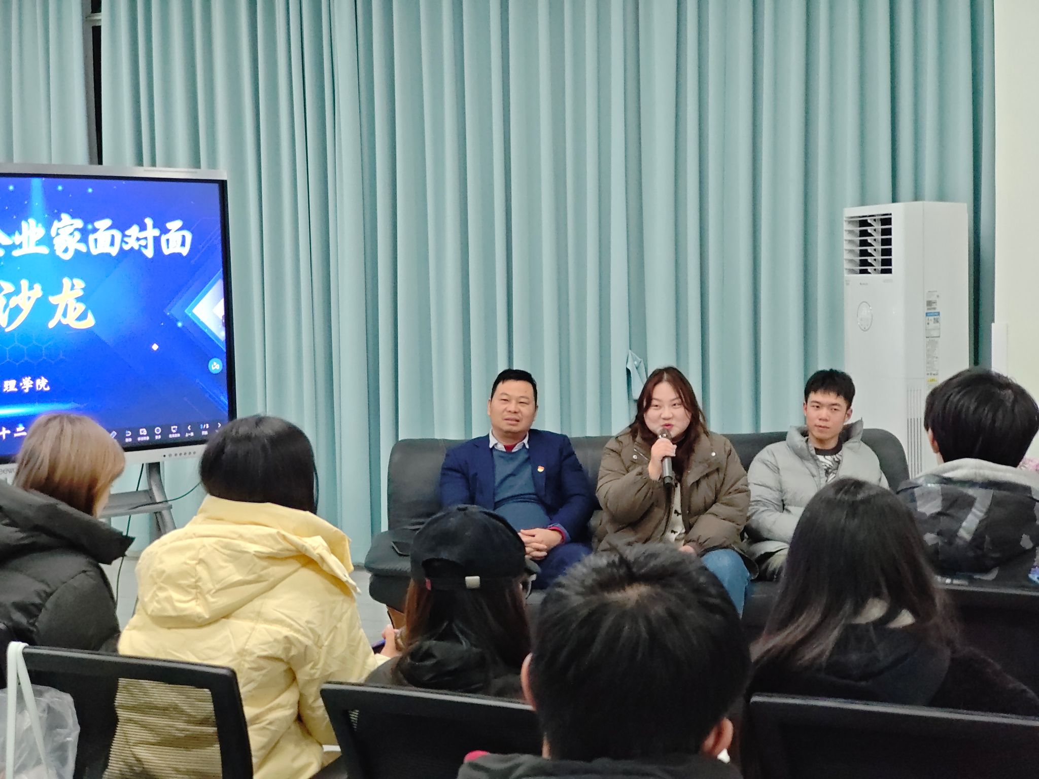 活动伊始,四位企业家介绍了各自企业的概况,分享了他们从团队建设到市场拓展,从创新思维到风险应对等方面的经验,并着重强调了团队协作的重要性。他们指出,具备扎实专业技能、良好沟通能力、较强学习能力和创新精神的人才是企业发展的核心动力,鼓励同学们在大学期间努力学习专业知识,积极参加实习实践,不断提升团队合作能力与综合素质,积累未来择业、就业的“底气”,成长为社会和企业需要的“多面手”。
