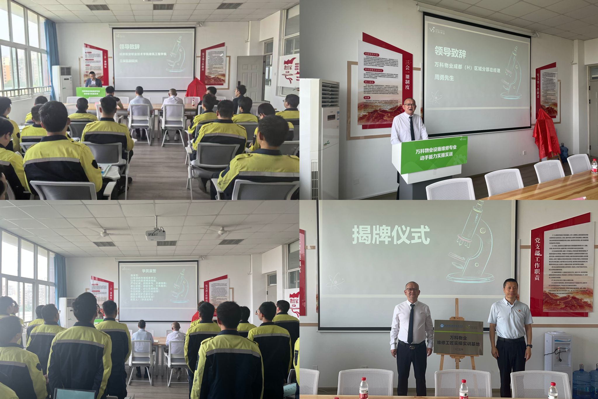 仪式现场,全体学员庄严宣誓,承诺以饱满热情投入学习,严守纪律、团结协作。随后,周勇与余彦滨共同为“万科物业修缮工匠培训实操实训基地”揭牌,标志着校企共建的实战化培训平台正式启用。