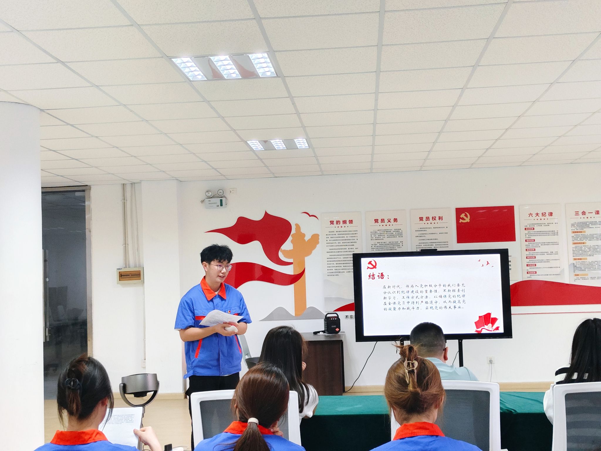 第一组成员周心明围绕《共产党员如何遵守纪律》专题调研进行汇报。报告对照党章要求,通过调研和案例分析,梳理了当前党员队伍中存在的思想松懈、监督缺位等突出问题。结合典型案例的对比分析,强调了新时代党员持续加强党性修养和筑牢廉洁自律防线的重要性。