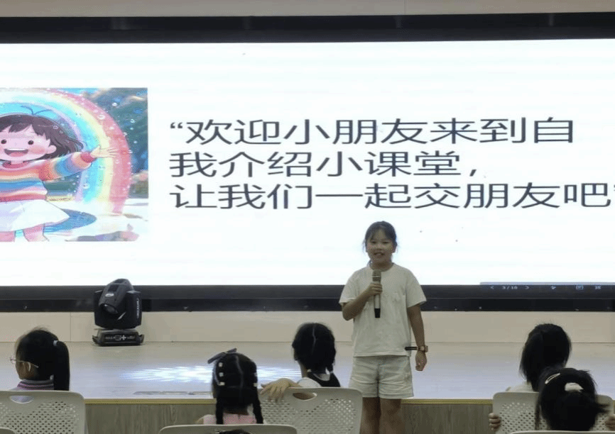 活动伊始,志愿者组织孩子们自我介绍。一名小女孩主动登台,清晰介绍姓名、年龄和爱好,稚嫩表现获阵阵掌声。随后,更多孩子陆续上台分享爱好、演唱儿歌,现场氛围持续升温。为帮助腼腆儿童融入集体,志愿者准备马克笔和卡片,引导制作 “自我介绍名片”。孩子们用画笔绘出喜爱图案、写下名字,以独特方式展现自我。大家纷纷举起作品展示,现场温馨热烈。