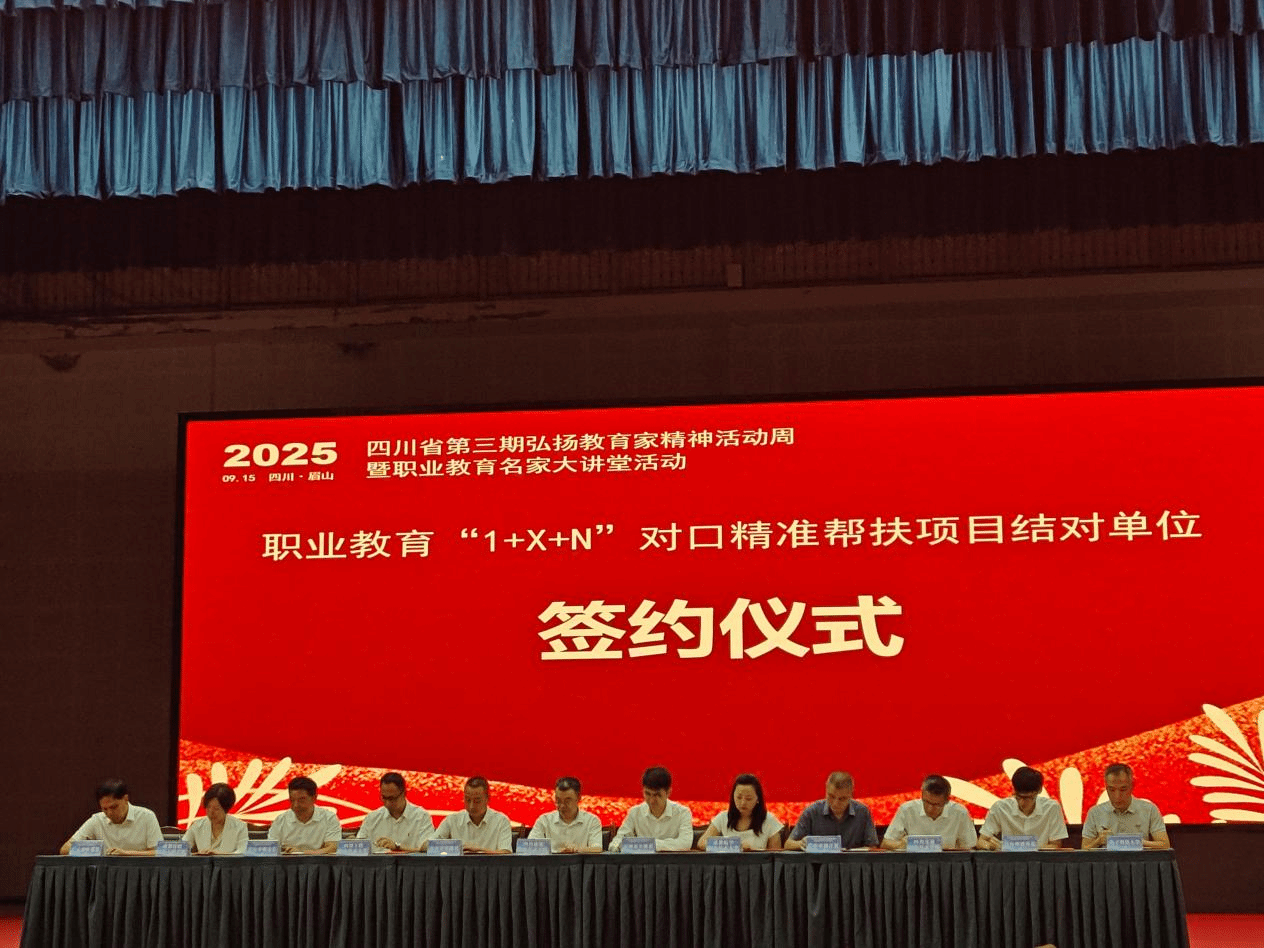 此次帮扶结对按照《四川省教育厅关于乡村振兴重点帮扶县与欠发达县“1+X+N”对口精准帮扶职业学校教师素质能力提升项目实施工作的通知》(川教函〔2025〕235号)文件要求,全省六个欠发达县职业学校与域内六个国家级“双师型”教师培训基地进行签约。项目旨在推动优质职教资源向欠发达地区辐射,助力乡村振兴,全面提升受扶学校教师队伍能力素养及人才培养质量。