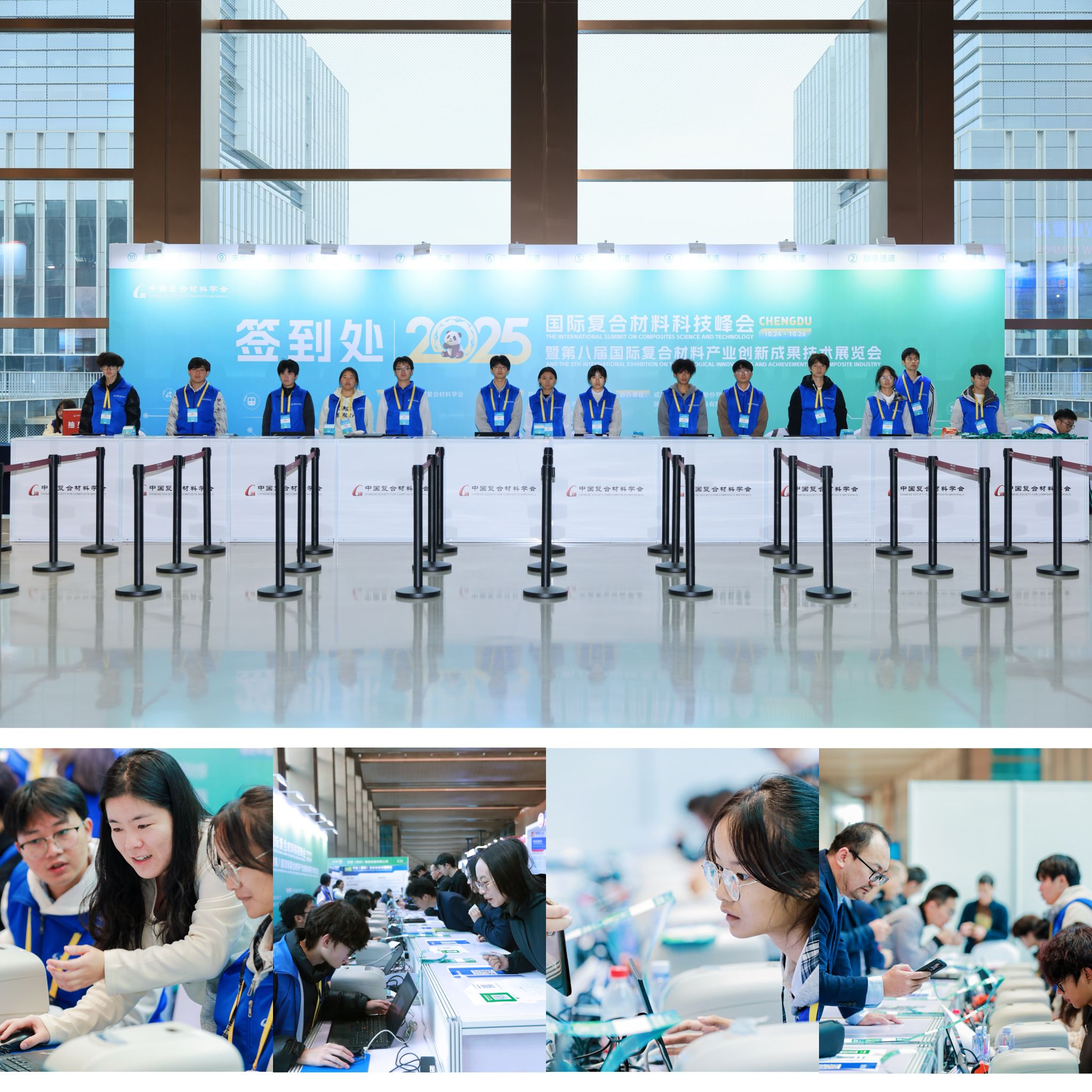 10月24日至26日,2025国际复合材料科技峰会(ISCT2025 & ICIE8)在成都圆满落幕。作为活动承办方之一,学校承担了本次盛会的志愿服务保障工作。在校团委的有力号召与民航运输学院、新材料学院等二级学院的积极协同下,一支由80余名优秀学子组成的志愿者团队火速集结。从10月23日的前期筹备到26日会议闭幕,成航青年以高度的责任感、专业的服务水平和饱满的热情,向世界展现了昂扬向上的青春风采,成为峰会一道亮丽的风景线。