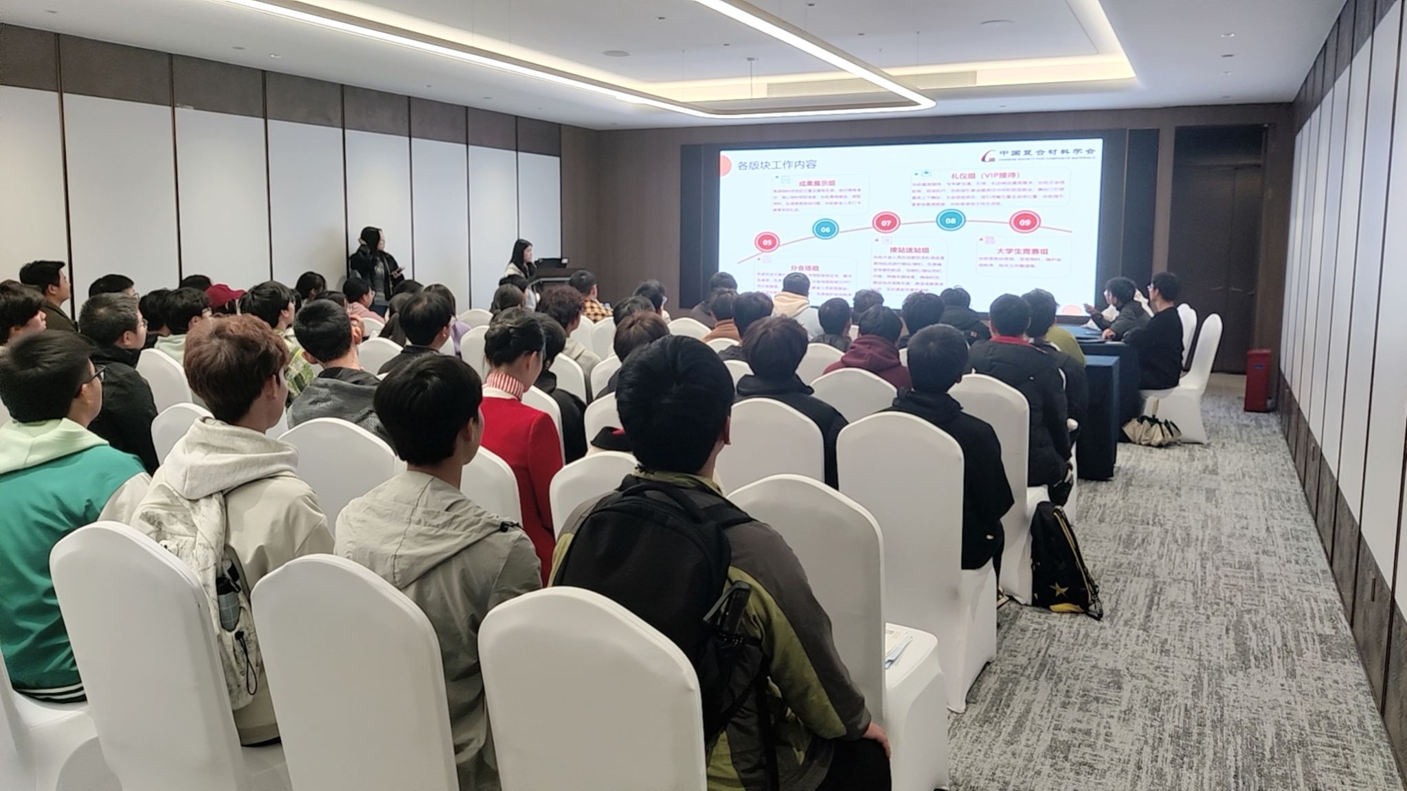 为确保服务质量,校团委联合相关二级学院,并与中国复合材料协会精心组织了系统化的岗前培训。10月23日,成航志愿者服务总队指导教师刘忻宜对志愿者们进行了全面动员,明确了各岗位职责、服务流程与工作要点。培训一结束,全体志愿者便立刻投身于紧张的准备工作,高效协作,在短时间内完成了1200余份会议物资的分装任务,为峰会的顺利开幕奠定了坚实基础。