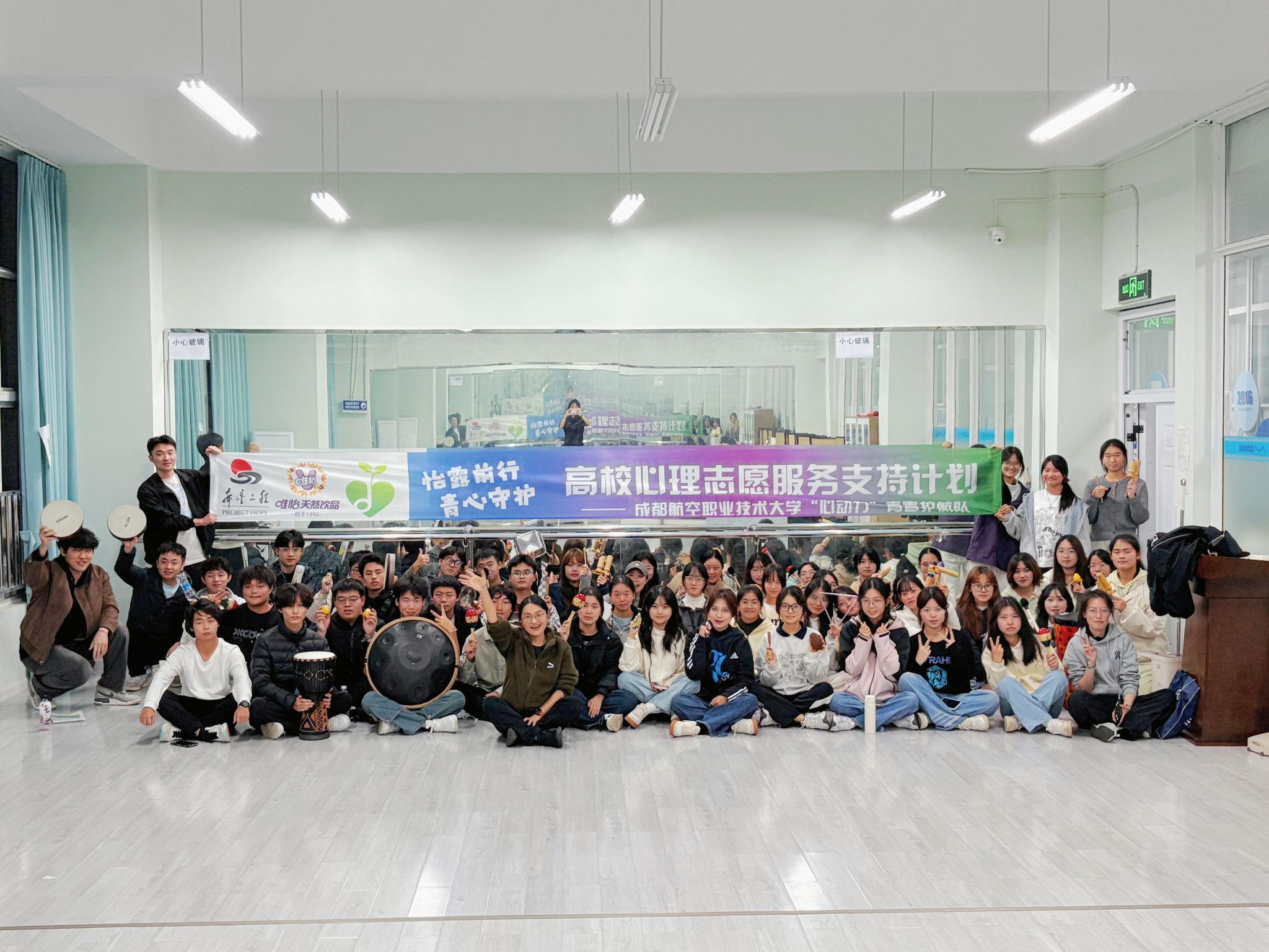 2025年10月30日,成都航空职业技术大学“心动力”青春护航队在龙泉校区二期实训楼505举办了一场别开生面的“鼓‘舞’心声”情绪释放工作坊。作为“怡露前行・青心守护”高校心理志愿服务计划的专项资助项目,本次活动巧妙融合艺术疗愈与心理支持,引导学生在轻松的氛围中,通过身体的律动与节奏释放学业与生活压力,为他们的心理健康注入了一股温暖而强大的力量。