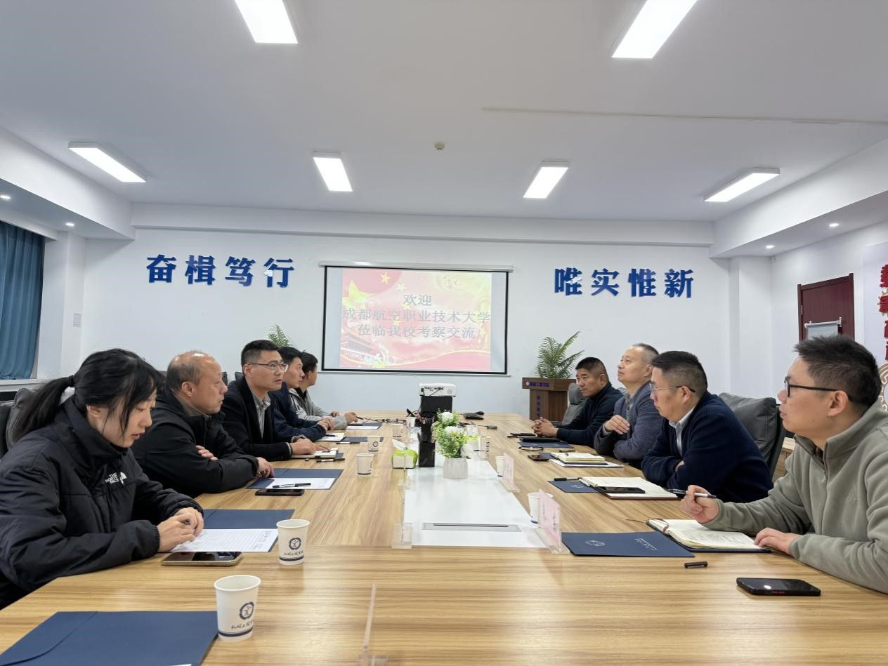 在西安航空学院,调研组首先观看该校专题宣传片,全方位了解该校办学积淀与航空特色优势。随后,西安航空学院军士学院院长张军详细介绍学校发展脉络,并围绕“学业夯实专业基础、训练锤炼军人作风、能力适配部队需求、技能对接岗位标准”四维培养体系,结合培养经验,分享建设成效与育人案例。随后,冯成龙介绍了我校军士培养的基础与改革方向。他表示,西安航空学院在航空特色军士培养、校军企协同育人等方面的经验丰富、具有参考价值,此次调研旨在精准学习破解“管理效能提升、技能考证提质”等难题的实招硬招。