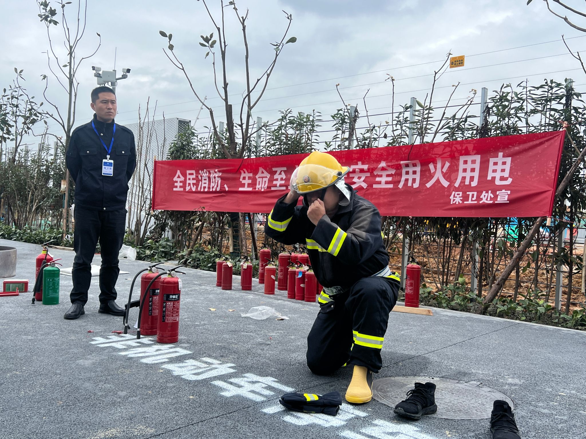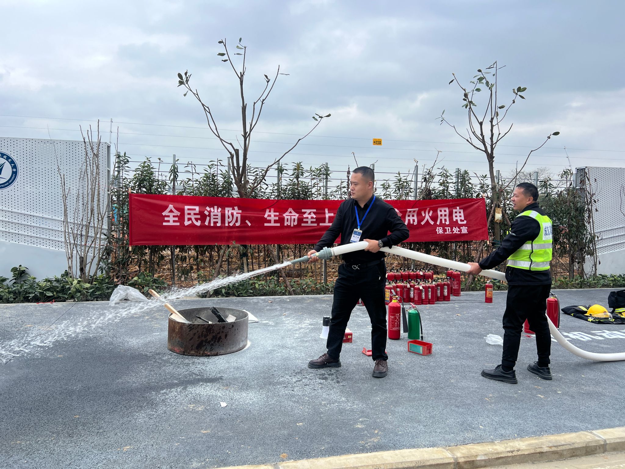 针对新都校区新投入使用的特点,保卫处为保安队员增设专项强化培训,围绕校园突发火灾应急响应流程,重点强化人员疏散组织、初期火灾扑救战术及个人防护装备使用等专业技能,确保保安队伍在突发火情时“拉得出、用得上、打得赢”,切实筑牢校园安全“第一道防线”。