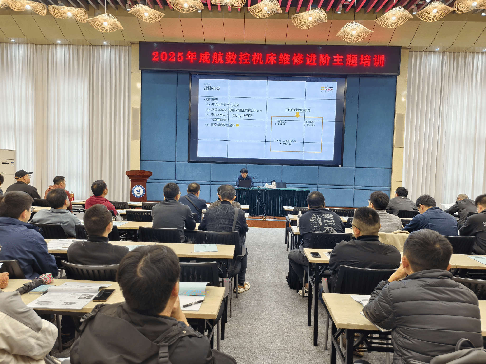 2025年10月23日,由成都航空职业技术大学(简称:成航)联合成都市航空航天学会、北京发那科机电有限公司共同举办的数控机床维修进阶主题培训班在成航龙泉驿校区正式开班。此次培训面向新都区、龙泉驿区20余家航空、汽车等企业开展,吸引了40余名工匠、技师报名参与。培训特邀北京发那科机电有限公司高级培训工程师、数控设备维修资深培训专家黄文担任主讲人,以实战化技术内容破解智能制造领域高技能人才短缺难题,为区域制造企业高质量发展注入技术动能。