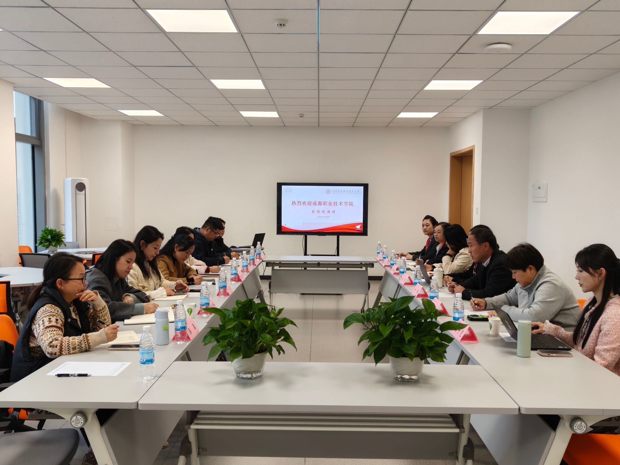 会议伊始,邹潇首先表示了此次来访的背景与目的,强调希望通过此次调研,深入学习我校在相关工作方面的先进经验和典型做法,为成职院相关工作的优化提升提供借鉴。