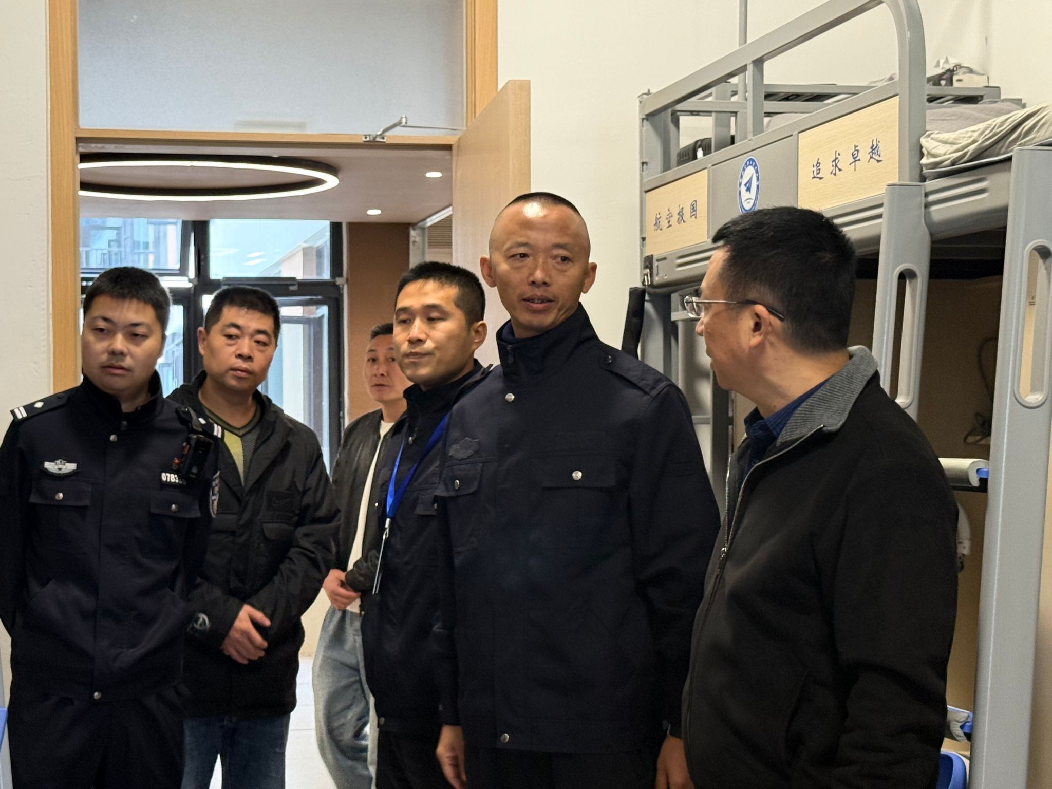 调研组深入学生宿舍,重点检查了消防安全设施、用电规范及宿舍管理情况;随后前往实训基地,实地查看教学设备安全操作流程与防护措施落实情况。廖代安就日常管理中可能存在的安全隐患与保卫处工作人员进行了现场交流。