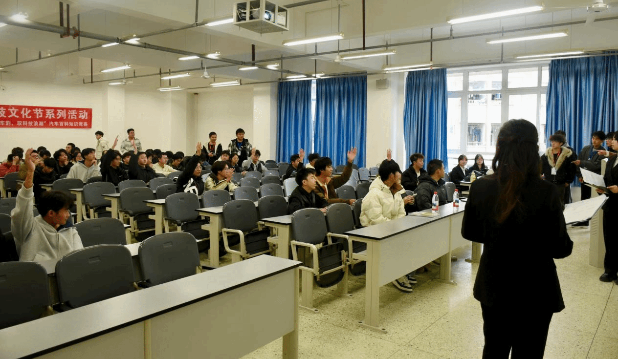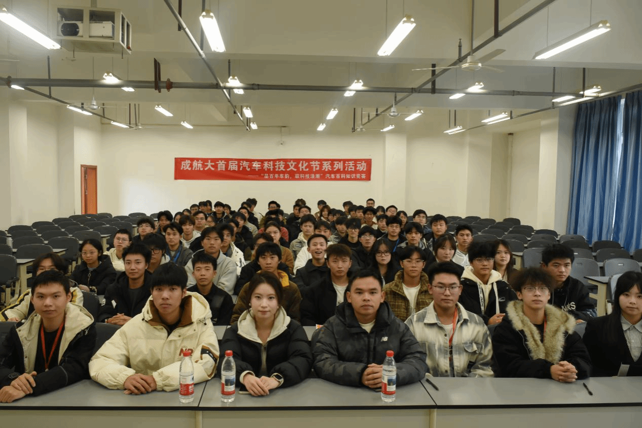 为搭建汽车知识交流平台,激发学子专业探索热情,夯实专业知识基础,2025年11月18日,汽车工程学院在博学楼1-312教室顺利举办了成航第一届汽车百科知识决赛。指导老师周密思,汽车科技创新协会晏文慧、钱春及115名学生参加了本次活动。