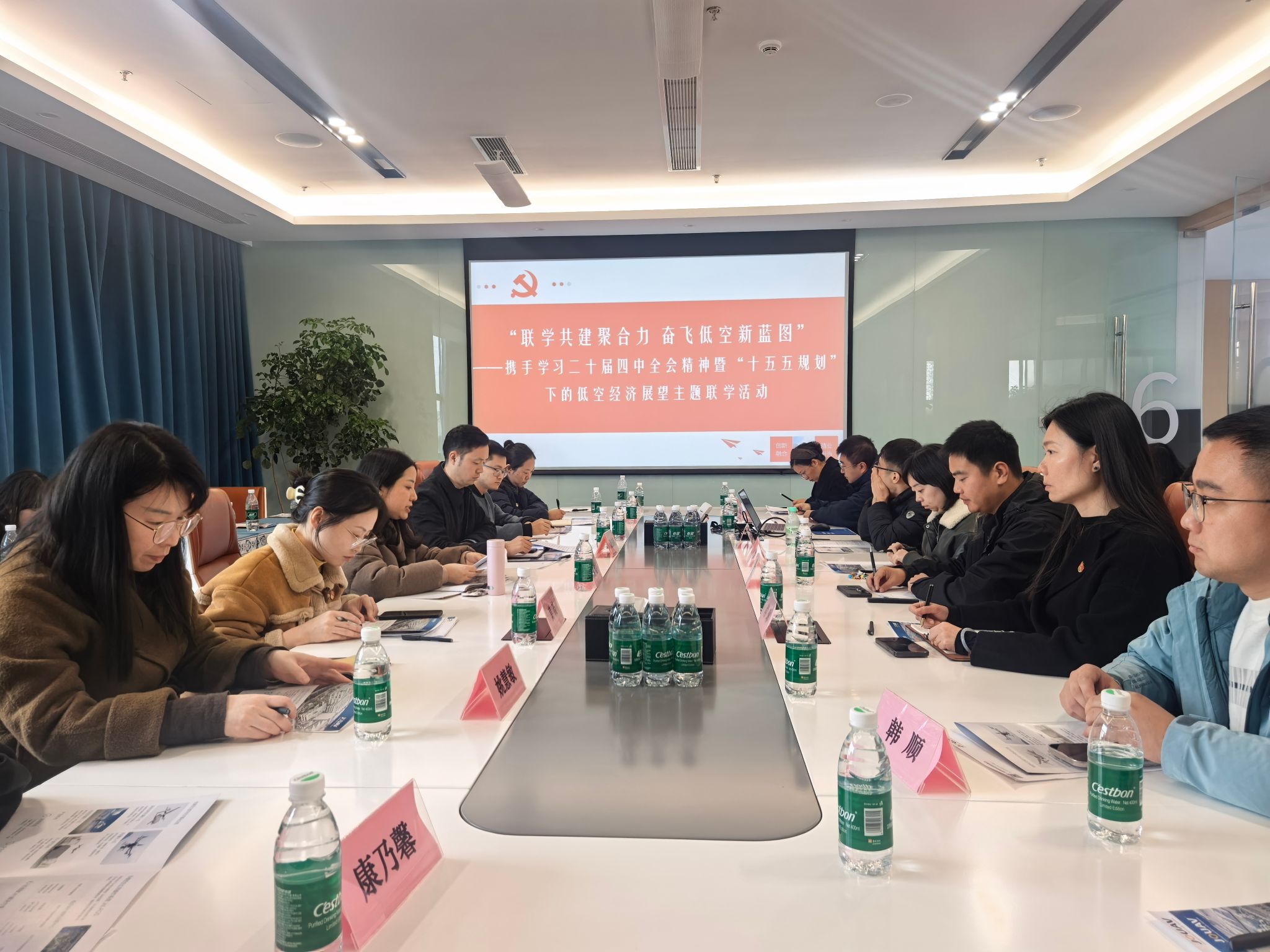 为深入学习贯彻党的二十届四中全会精神,前瞻把握国家“十五五”规划战略方向,推动低空经济与职业教育深度融合,2025年11月18日下午,无人机产业学院教师党支部、学生党支部,马克思主义学院教师第二党支部与成都纵横自动化技术股份有限公司(下文简称成都纵横)党支部深度联动,共同开展了“联学共建聚合力 奋飞低空新蓝图”主题联学活动。无人机产业学院党建工作负责人张应培、教师党支部书记姚慧敏、学生党支部书记黄芮,马克思主义学院教师第二党支部书记邢敏以及师生党员代表共计30余人参加活动。