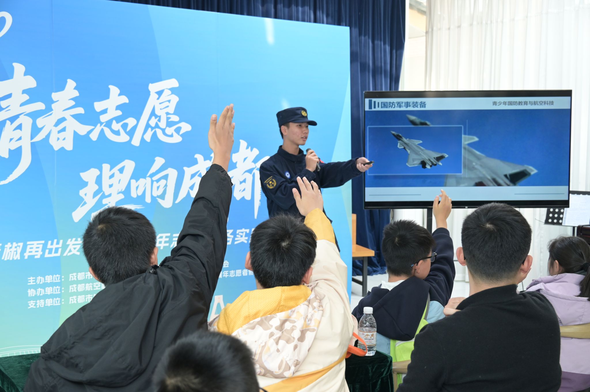 11月30日,军士管理学院“追梦”宣讲团受邀参加由成都市青年发展中心、共青团成都市锦江区委员会主办的“青春志愿 理响成都”成都青年志愿服务实践活动,走进锦江区晨辉社区开展国防教育与航空科技培训活动,厚植群众爱国情怀,普及航空科技知识,对青少年开展国防教育。