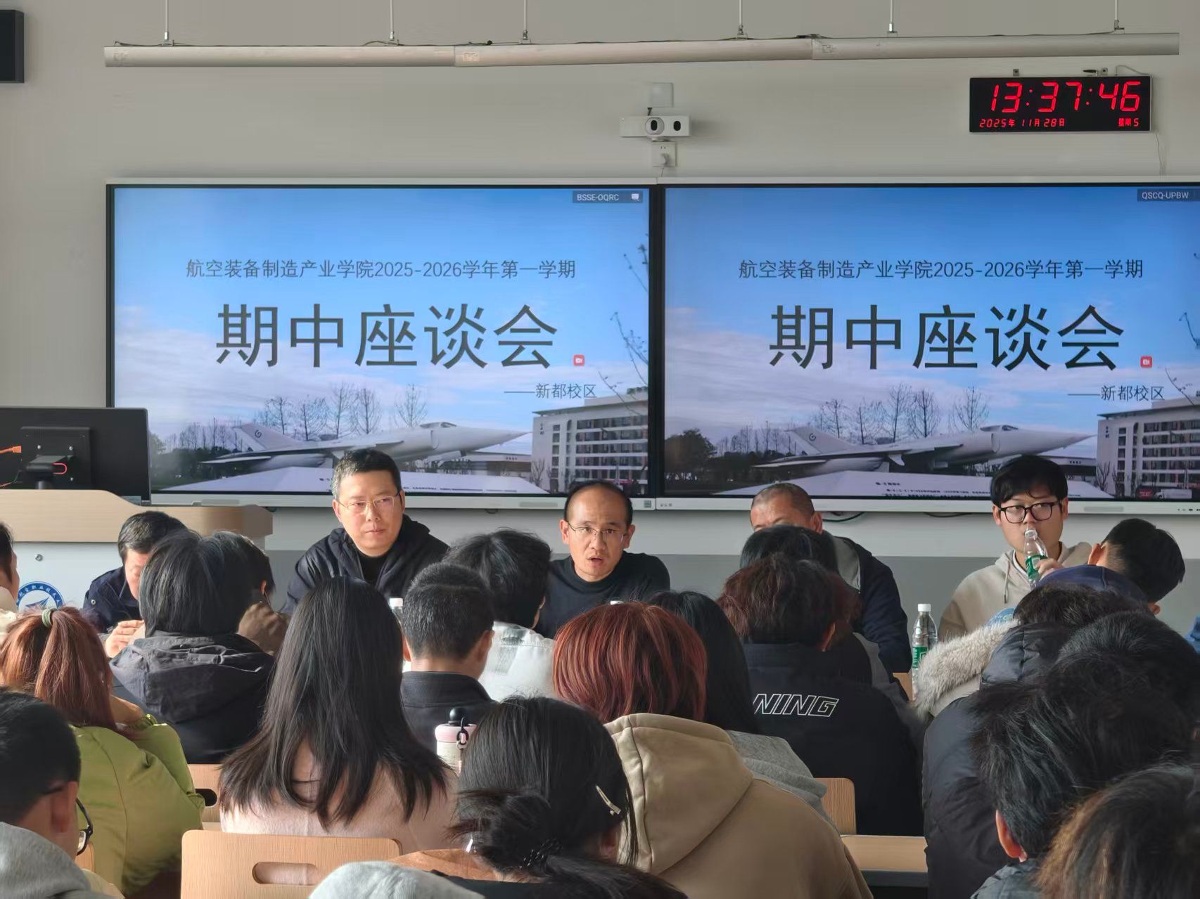此次期中教学座谈会覆盖两大校区,既聚焦教学核心痛点,也关注校园生活细节,为学院精准优化教学管理、全面提升育人质量提供了第一手参考。下一步,航空装备制造产业学院将梳理总结反馈成果,细化各项改进措施,持续完善课程体系、提升课堂质量、优化校园服务,不断夯实育人根基,助力教育教学工作再上新台阶。