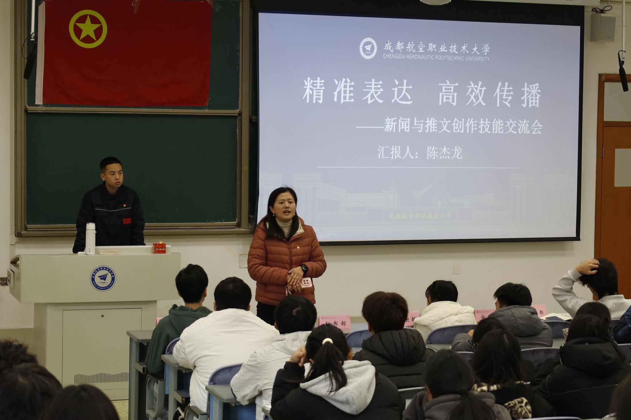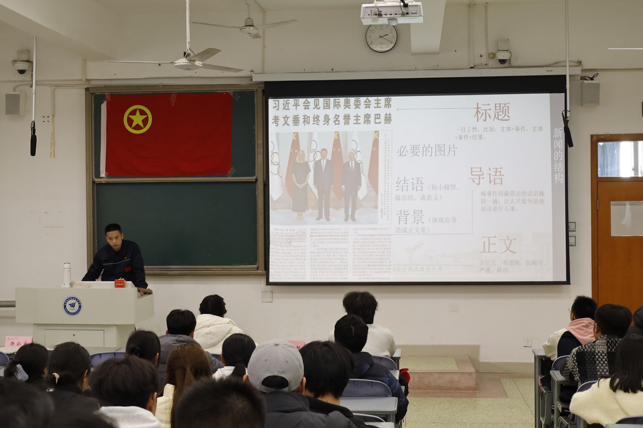 紧接着在11月25日,第二期"青翼讲堂"在尚学楼203教室精彩继续。第二期特邀军士管理学院国奖获得者陈杰龙担任主讲,围绕"精准表达,高效传播"主题,聚焦新闻写作与推文创作技能。陈杰龙同学凭借其丰富的宣传实践经验,从新闻稿的基础规范到新媒体内容的创作技巧,系统讲解了宣传工作的核心要领,为同学们构建了完整的技能知识体系。