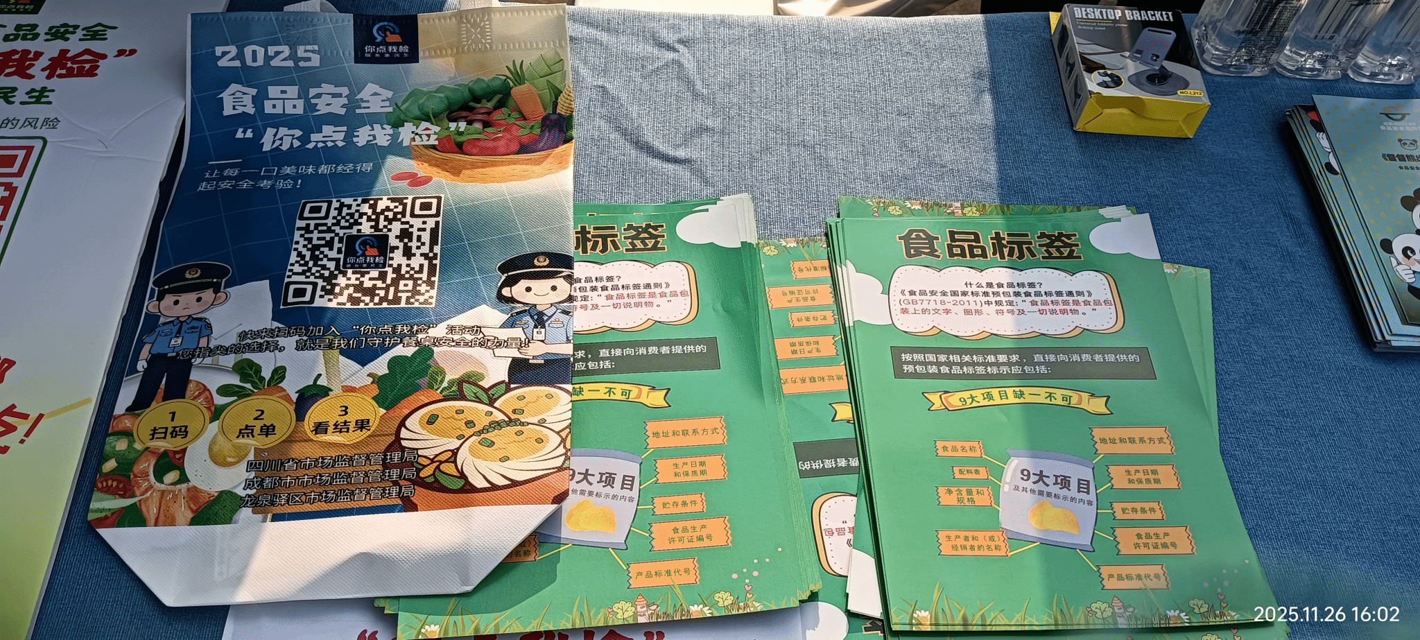 为切实增强师生食品安全防范意识,构建安全、健康、放心的校园饮食生态,11月26日下午,龙泉驿区市场监督管理局与学校后勤保障部饮食服务中心在校园食堂联合开展“尚德守法,共享食安”主题宣传活动。活动突破传统展板宣教模式,创新采用“扫码问卷”轻量化传播形式,以直观高效的形式普及食品安全知识,吸引了大量师生踊跃参与。