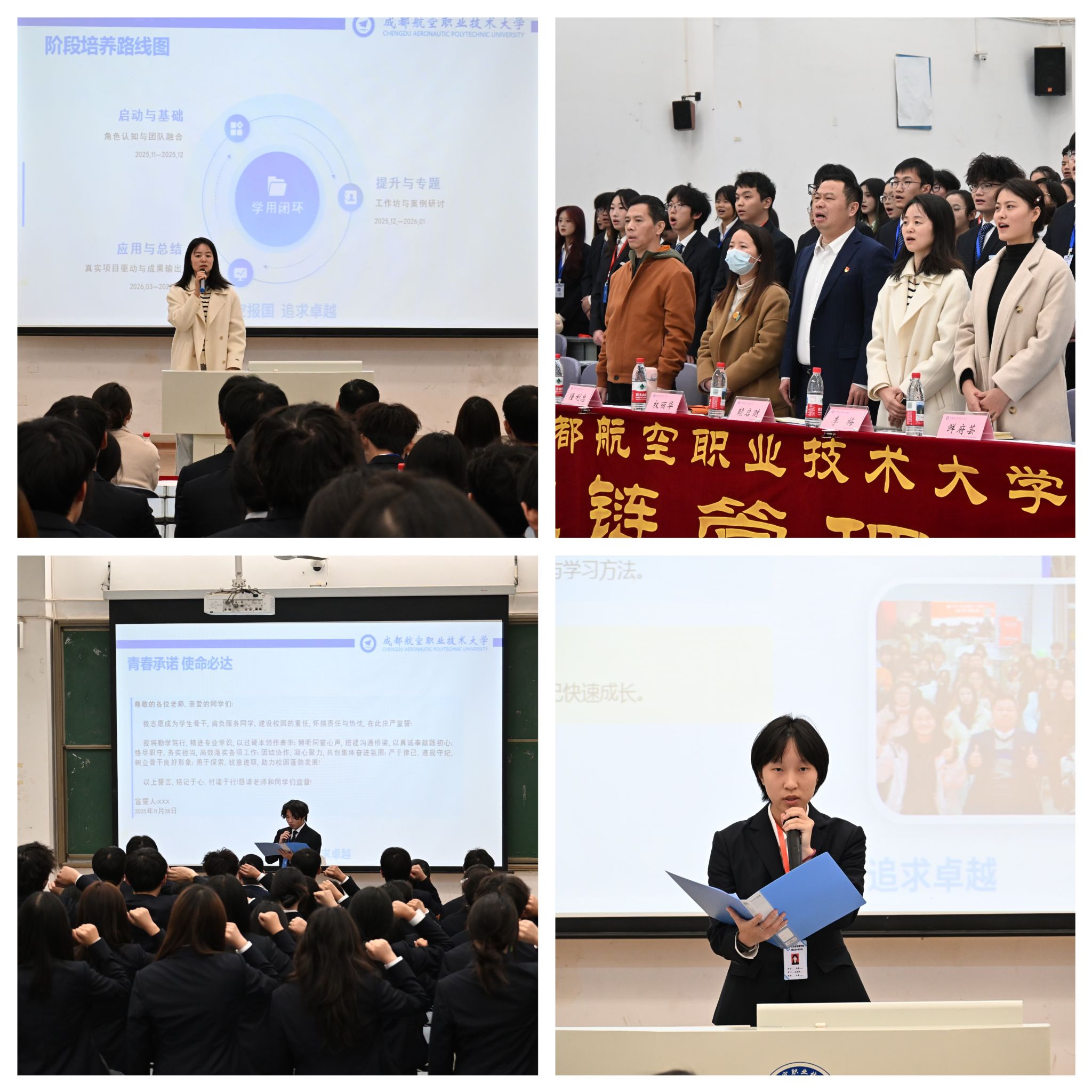 宣誓环节将仪式推向高潮。全体学员肃立举拳,庄严宣读学生骨干誓词,承诺以专业学识、真诚奉献和务实担当践行骨干使命,以供应链思维优化工作流程,以协同合作提升服务效能,共同致力于校园建设与同学成长。