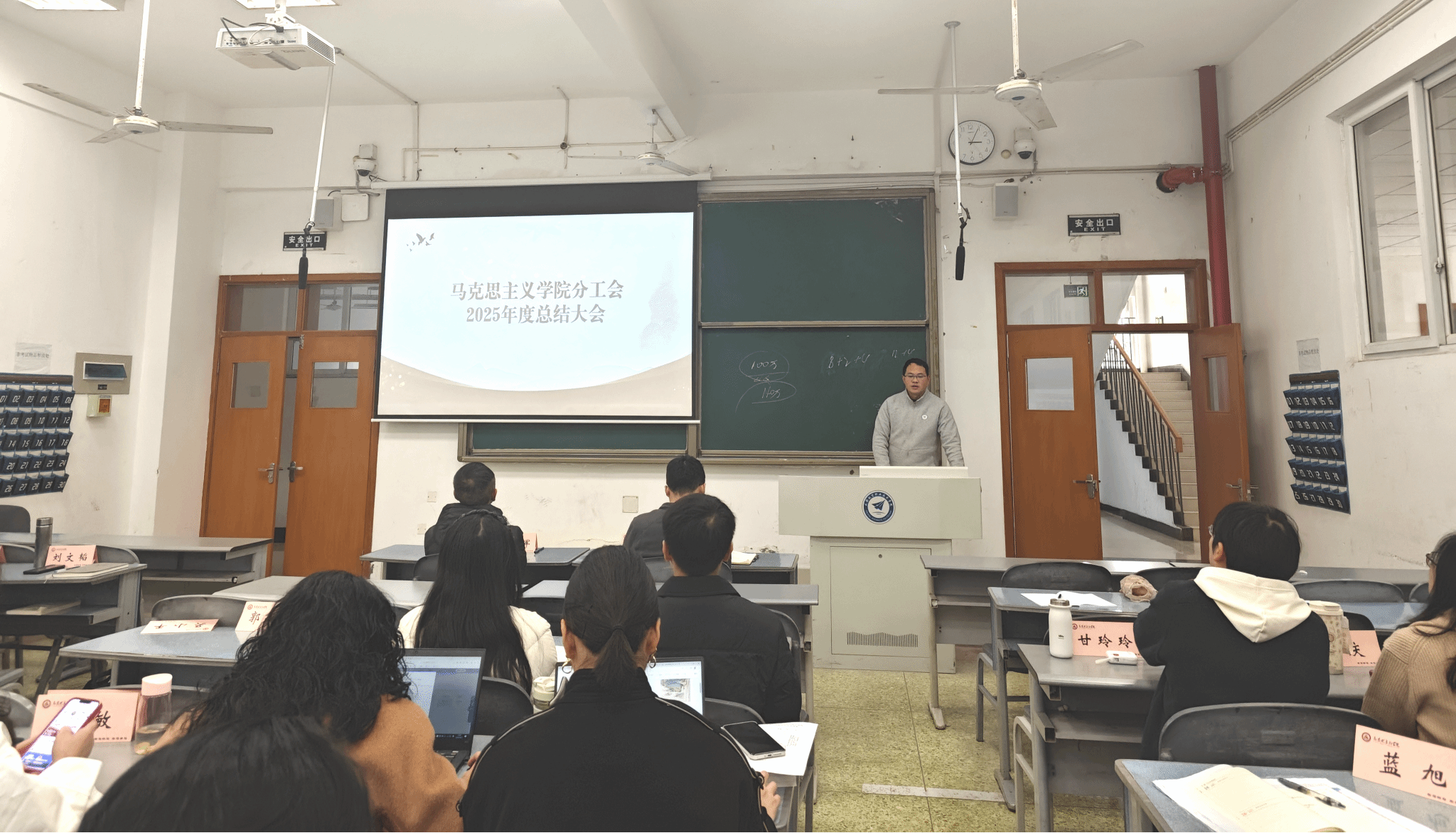 会议首先由分工会主席刘文韬作《马克思主义学院分工会2025年度工作报告》。报告系统梳理了一年来分工会在校工会和学院党总支领导下开展的各项工作。2025年,分工会紧密围绕学校与学院中心任务,积极履行职能,在强化民主管理、深化院务公开、实施凝聚力工程、加强师德建设、建设和谐校园、落实送温暖工程以及夯实组织建设等方面取得扎实进展。报告图文并茂地回顾了从新春联欢、妇女节登山、春游秋游到工会组织改选等一系列丰富多彩的活动,充分展现了学院分工会在服务教职工、促进学院和谐发展中的积极作用。报告也客观分析了当前工作中存在的活动形式创新性不足、青年教师关怀需深化、制度建设有待完善等问题。
