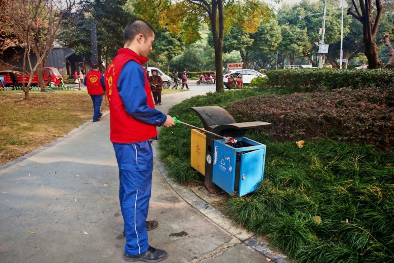 志愿者清理地面垃圾