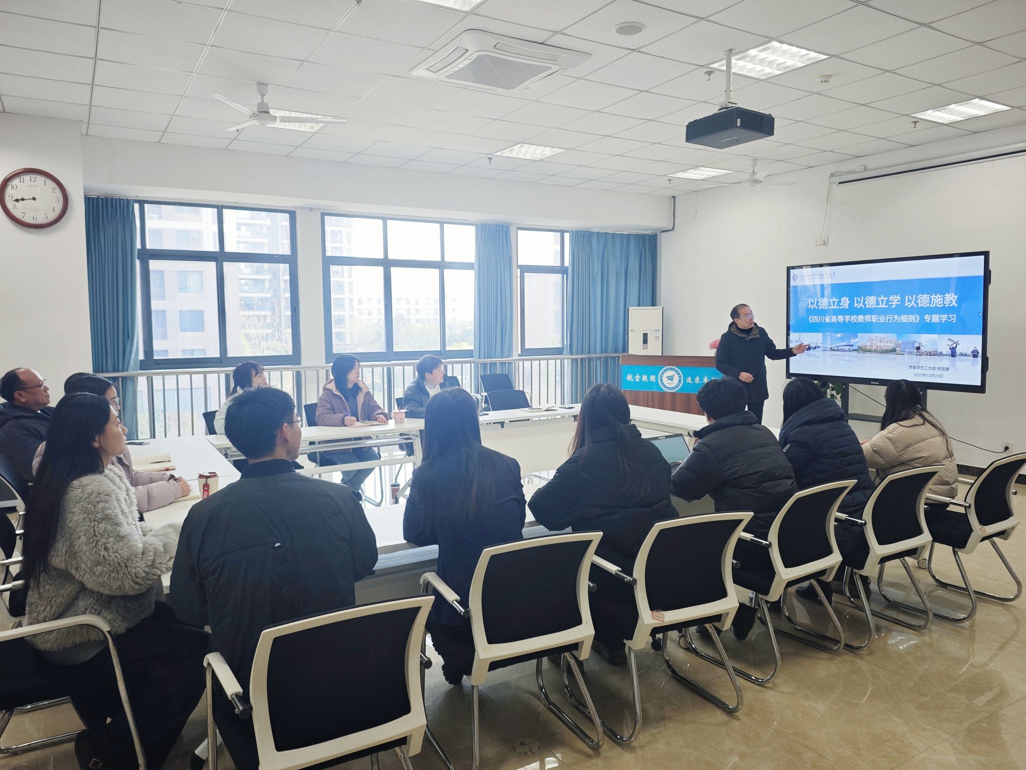 为深入贯彻落实国家及四川省关于新时代教师队伍建设改革的决策部署,进一步规范、引导党委学生工作部及团委(以下简称“学团”)教师以德立身、以德立学、以德施教,12月24日,在龙泉校区博学楼204会议室,学团两部门共同组织开展了《四川省高等学校教师职业行为细则》专题学习活动。党委学生工作部、团委负责人带头学习研讨,学团两部门全体教师积极参与学习。