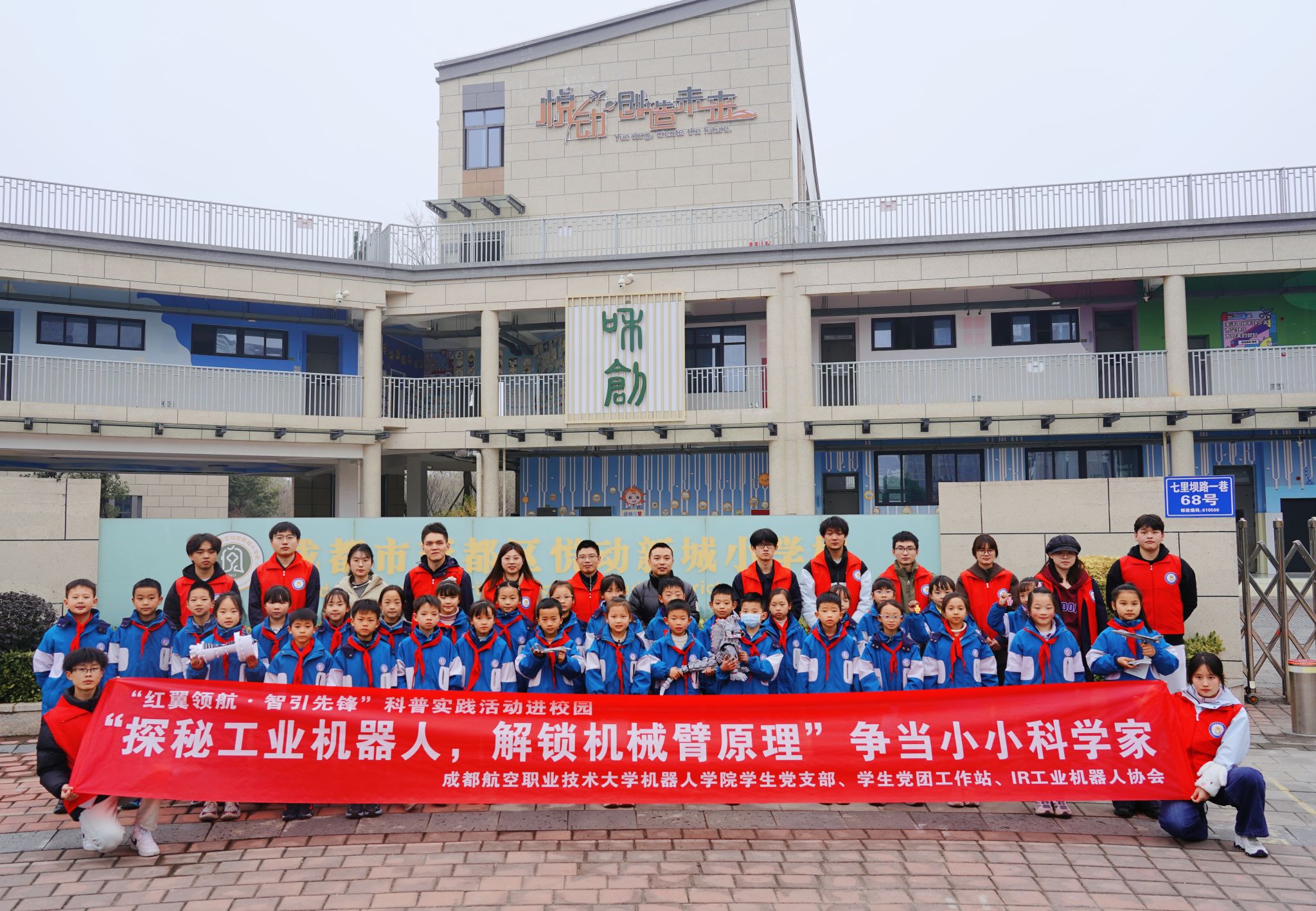 为进一步普及科技知识,提高青少年科学意识与科学素养,深化校地共建、校校联动,推动党建与科普教育深度融合,12月30日,成都航空职业技术大学机器人学院学生党支部联合IR工业机器人协会、石板滩街道,共同走进成都市新都区悦动新城小学、石板滩小学,开展“红翼领航·智引先锋”科普实践教育活动。