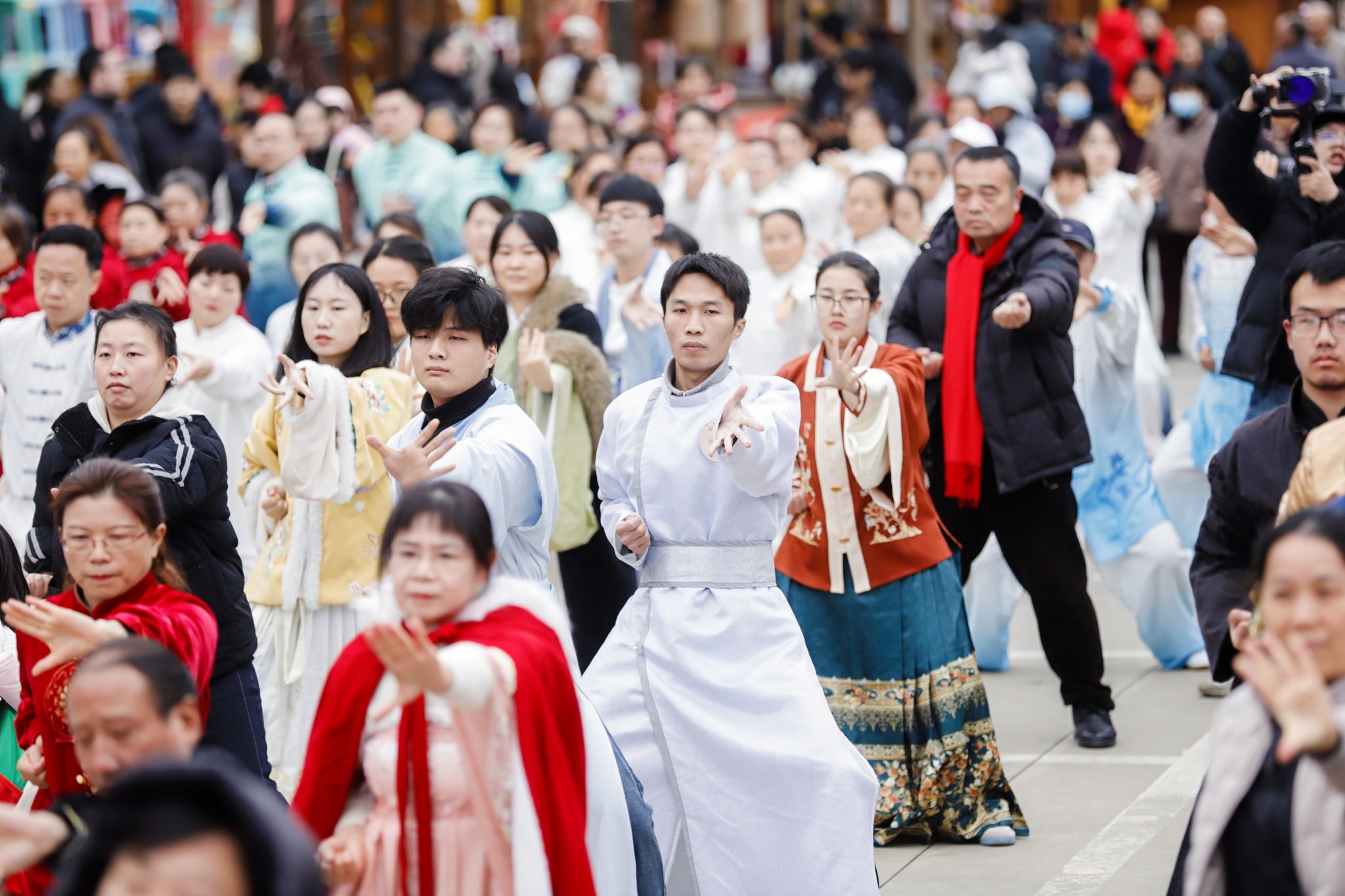 元旦佳节,新都锦门景区古风盎然、活力涌动。在学校团委的积极对接与组织下,新都校区新材料学院、航空装备制造产业学院、机器人学院23名学子身着传统汉服,受共青团新都区委邀请,参与“潮练新都·健康启元”——“八段锦迎新年”青年健康主题月启动仪式,在百人共练的沉浸式体验中感受传统文化魅力,展现我校新都校区青年学子的文化自信与青春风采。
