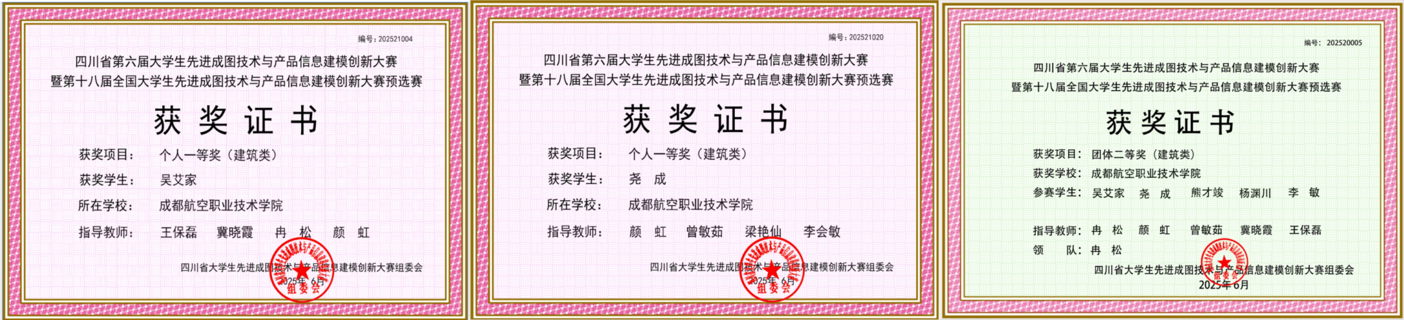 学院以竞赛赋能,锤炼专业匠心。2名学生获“全国大学生先进成图技术与产品信息建模创新大赛”省部级一等奖,5人获省部级团体二等奖,尽显匠心底色。