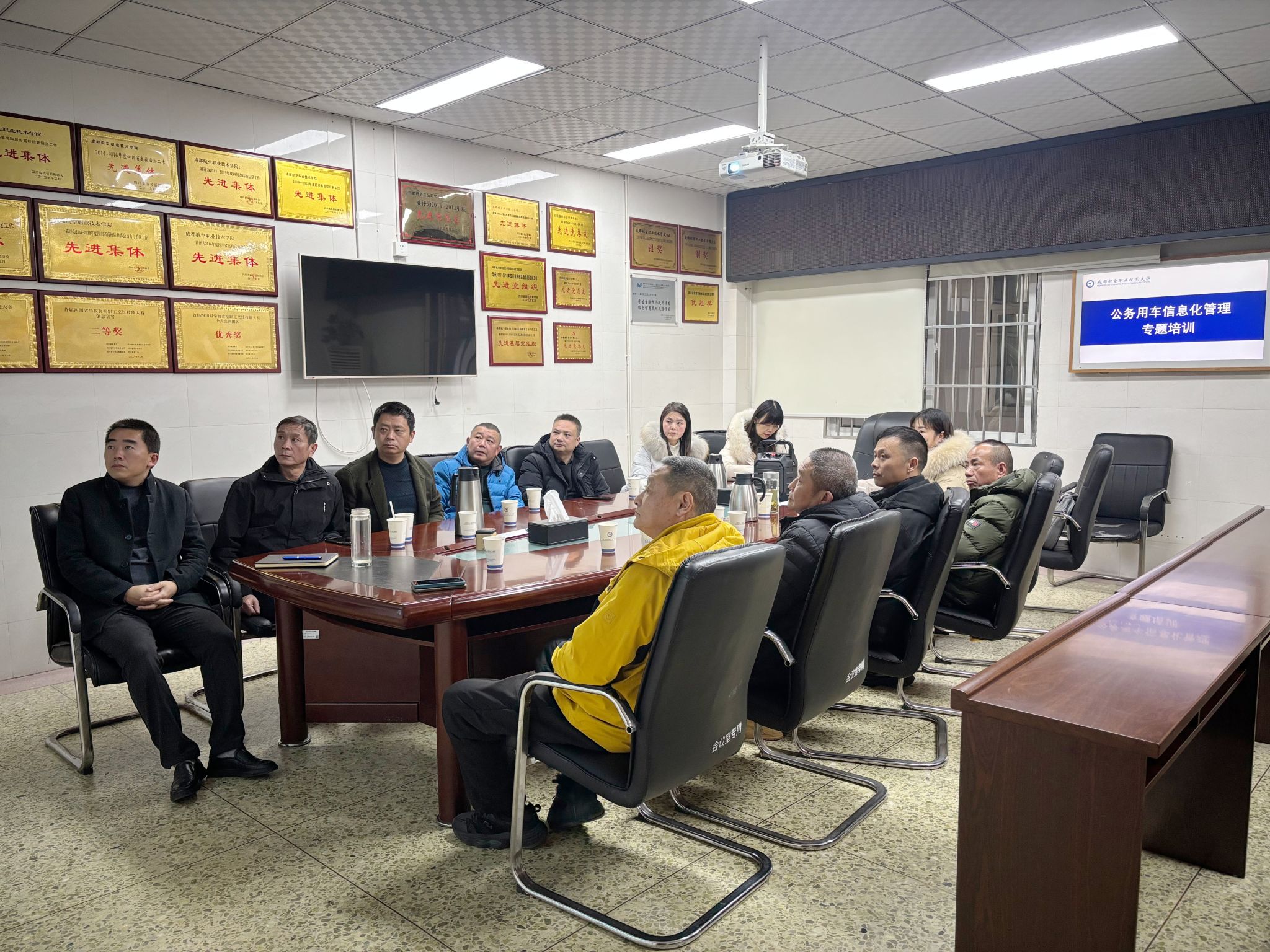 为全面落实四川省机关事务管理局关于公务用车信息化管理的工作要求,熟练掌握“四川省公务用车管理平台”操作流程,确保学校公务用车信息化管理工作规范落地,2026年1月8日下午,后勤保障部相关工作负责人曾小平带领车辆管理办公室管理人员、全体公务用车驾驶员,在后勤部二楼会议室集中参加了由省机关事务管理局组织的省属事业单位公务用车信息化管理专题线上培训。