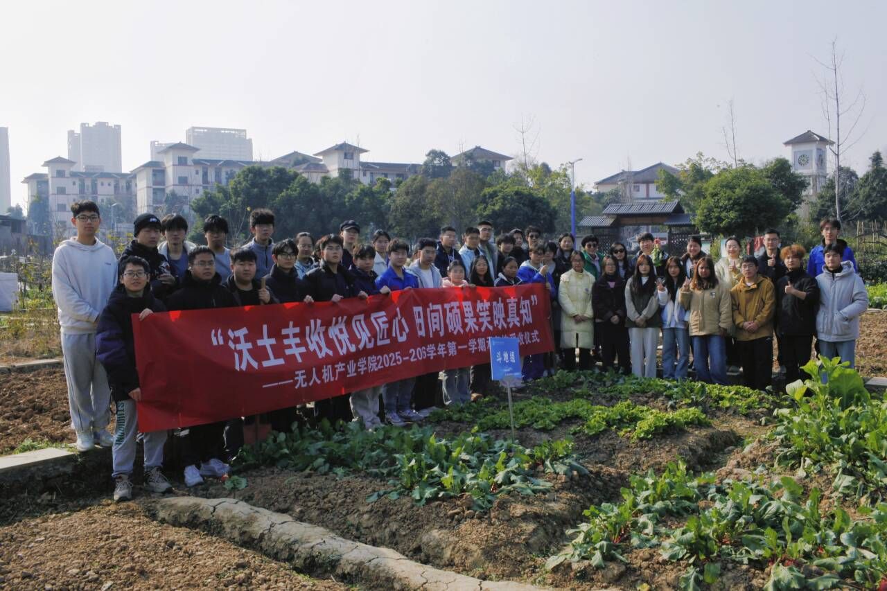 2026年1月9日下午,神农百草苑里传来阵阵欢笑声与泥土的清香。无人机产业学院(人工智能学院)2025—2026学年第一学期承包地采收活动在此开展,一场从耕耘到收获的劳动实践课迎来收官。学院学生工作负责人孔萍,学校党委学生工作部教师罗惠、张海燕、黄芸,辅导员戴升鑫、虞剑英、黄芮与34名学生共同踏入田间,见证并亲手收获一季的辛勤成果。